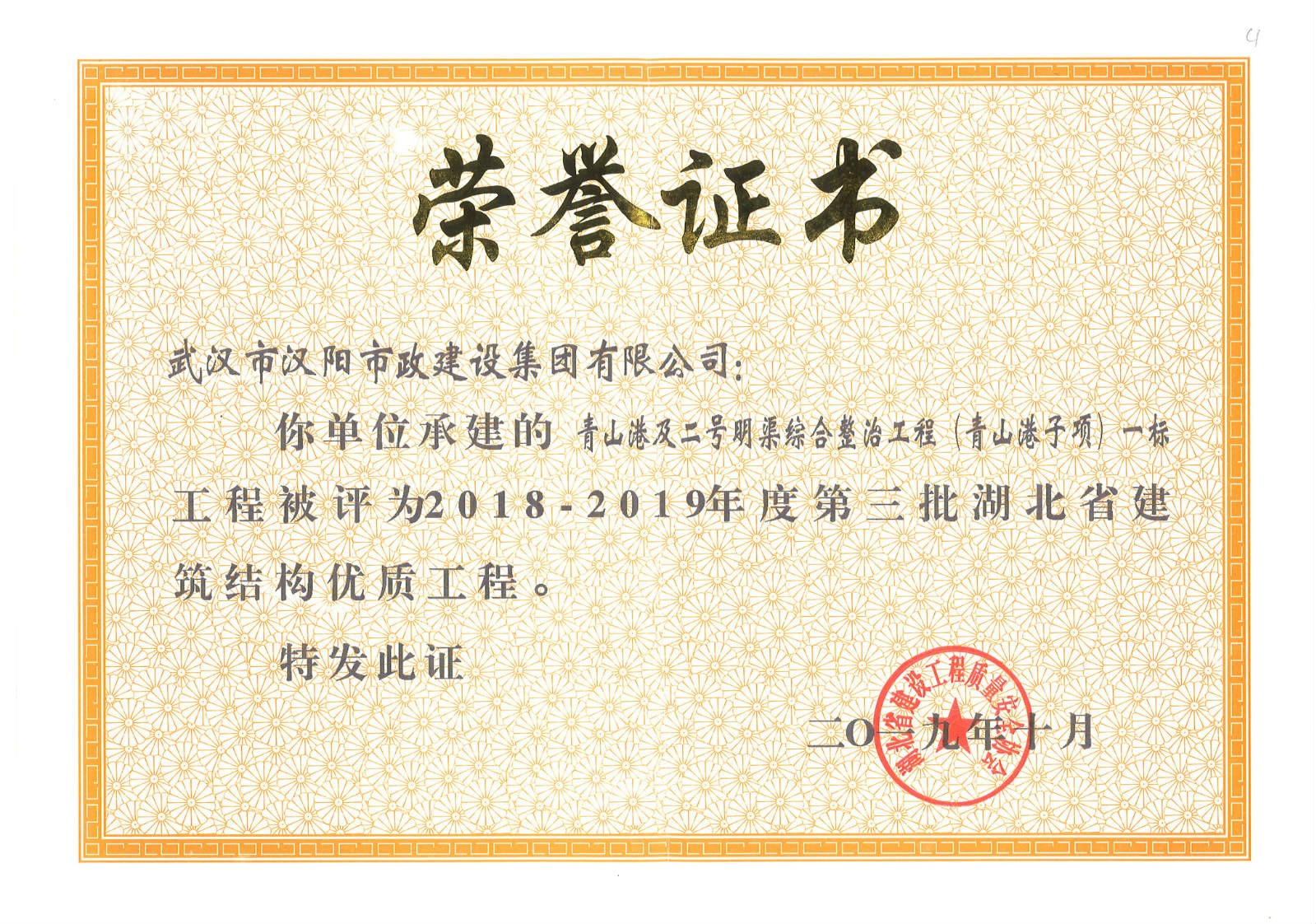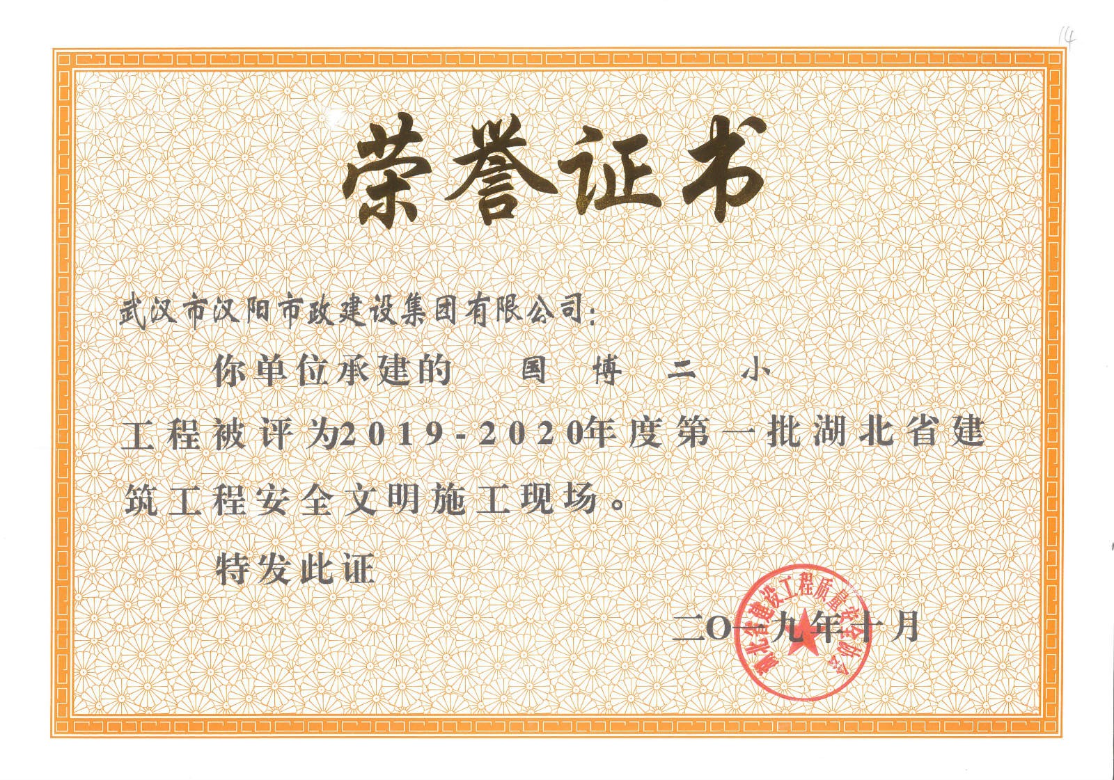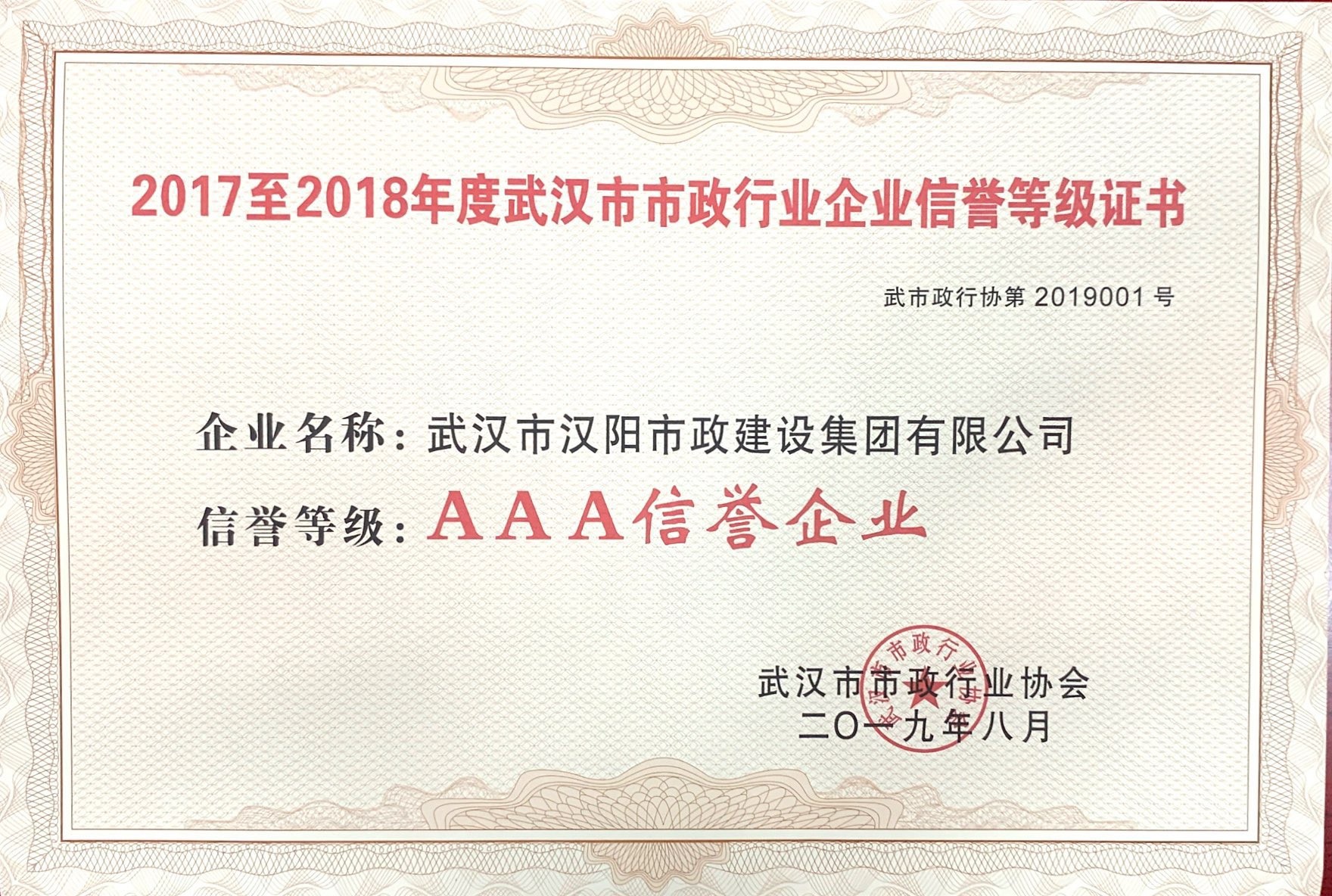 武汉市市政行业企业信誉等级证书