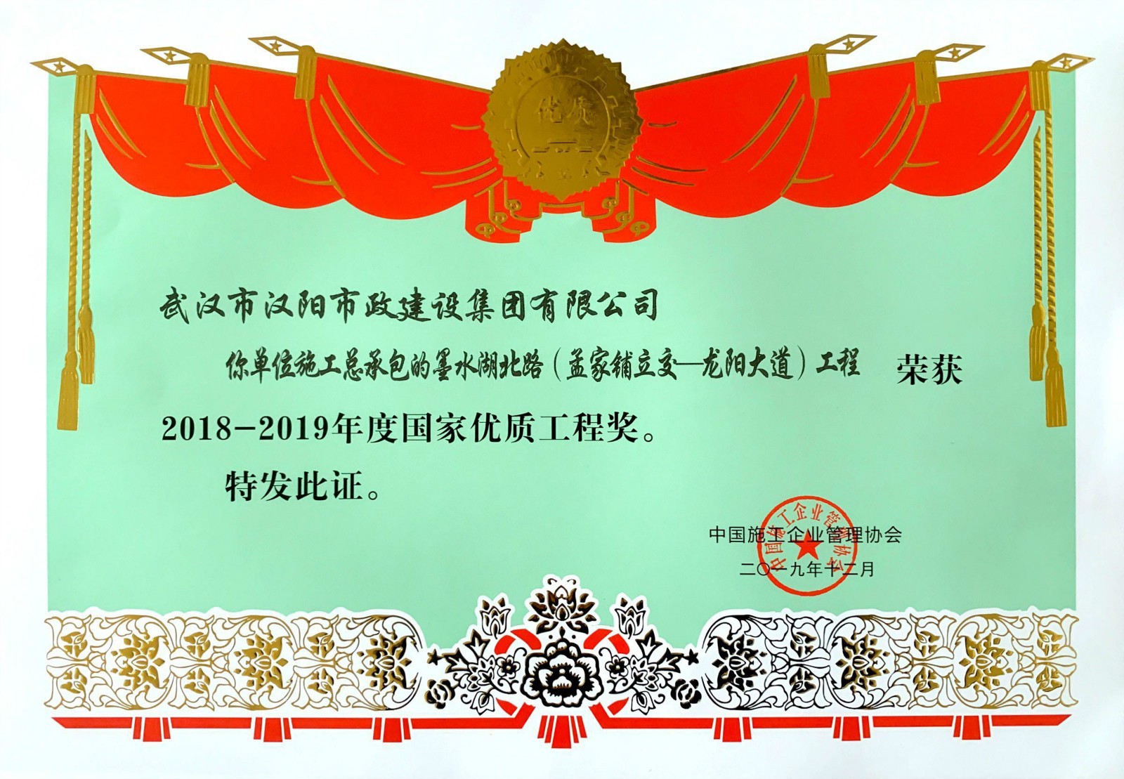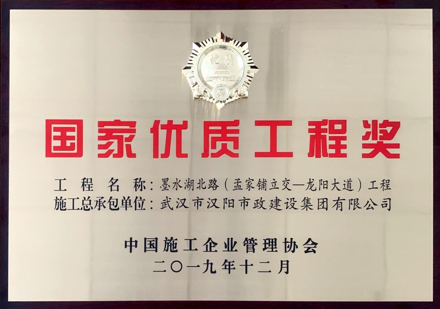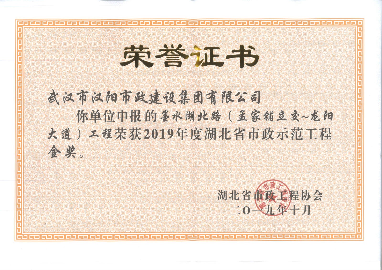 湖北省市政示范工程金奖