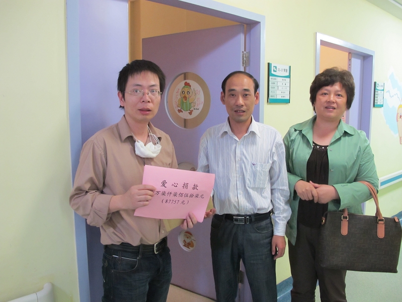 我公司职工李波、陈云娟同志年仅9岁的女儿李莞悦不幸患上了白血病,目前已经找到了相匹配的骨髓,但高达40余万的手术费让原本不幸的家庭雪上加霜,燃眉之急亟待解决!李波、陈应娟的困境引起了公司领导的高度重视。10月15日,集团公司工会向全体干部职工发出了“奉献爱心”捐款救助活动倡议。碎石筑长城,细流积成海。一时间,从公司领导到许多普通的职工,纷纷倾情相助参加到自愿捐助小宛悦的行动。集团公司工会总计收到爱心捐款 87757元。还有很多同事亲自到医院去看望小宛悦,捐出一份“爱心”。