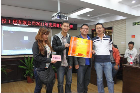 2011年9月20日上午8点半钟,天创公司2011年度质量知识竞赛在紧张而又活跃的气氛中拉开了帷幕。参加此次竞赛的选手均来自施工一线的技术人员,由龙阳湖东路项目部、二环线水东路项目部、什湖大道项目部、京汉大道项目部等八个项目部组成了8支代表队参赛。赛前,他们进行了认真的学习和复习,积极备赛,赛场上他们表现踊跃、气氛热烈。经过个人必答题、个人选答题、团队选答题、风险题等环节的激烈角逐,什湖大道代表队技压群雄,一举夺冠,显示了较高的质量知识水平。