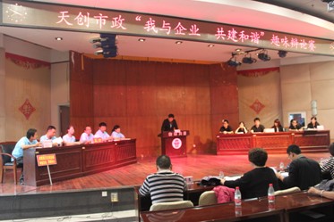 武汉天创市政建设工程有限公司组织举办“我与企业 共建和谐”趣味辩论赛,集团公司陈颖书记、邢荣斌主任等领导到场观看了比赛。