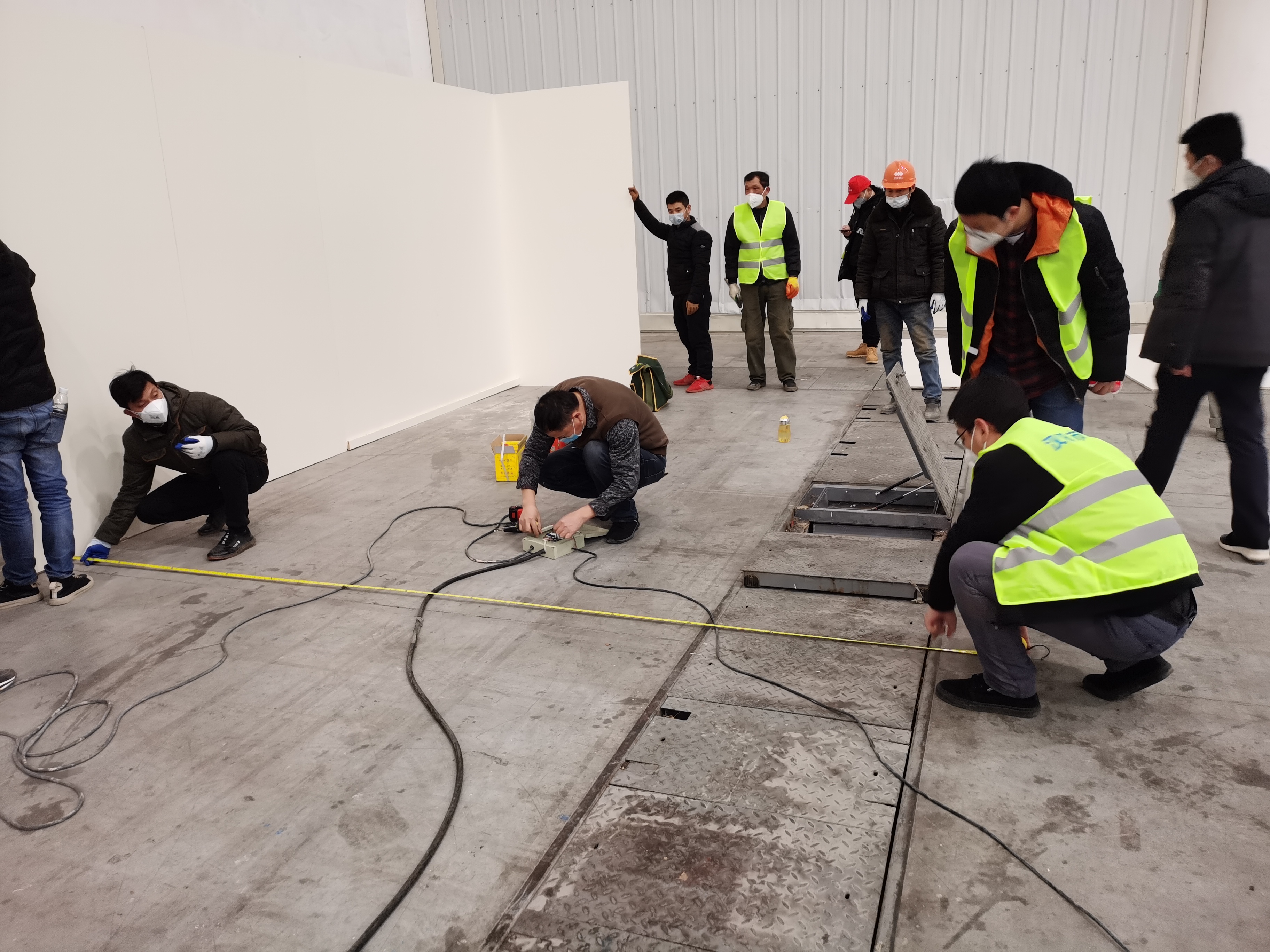 刚结束火神山医院的20余名安装工人就位