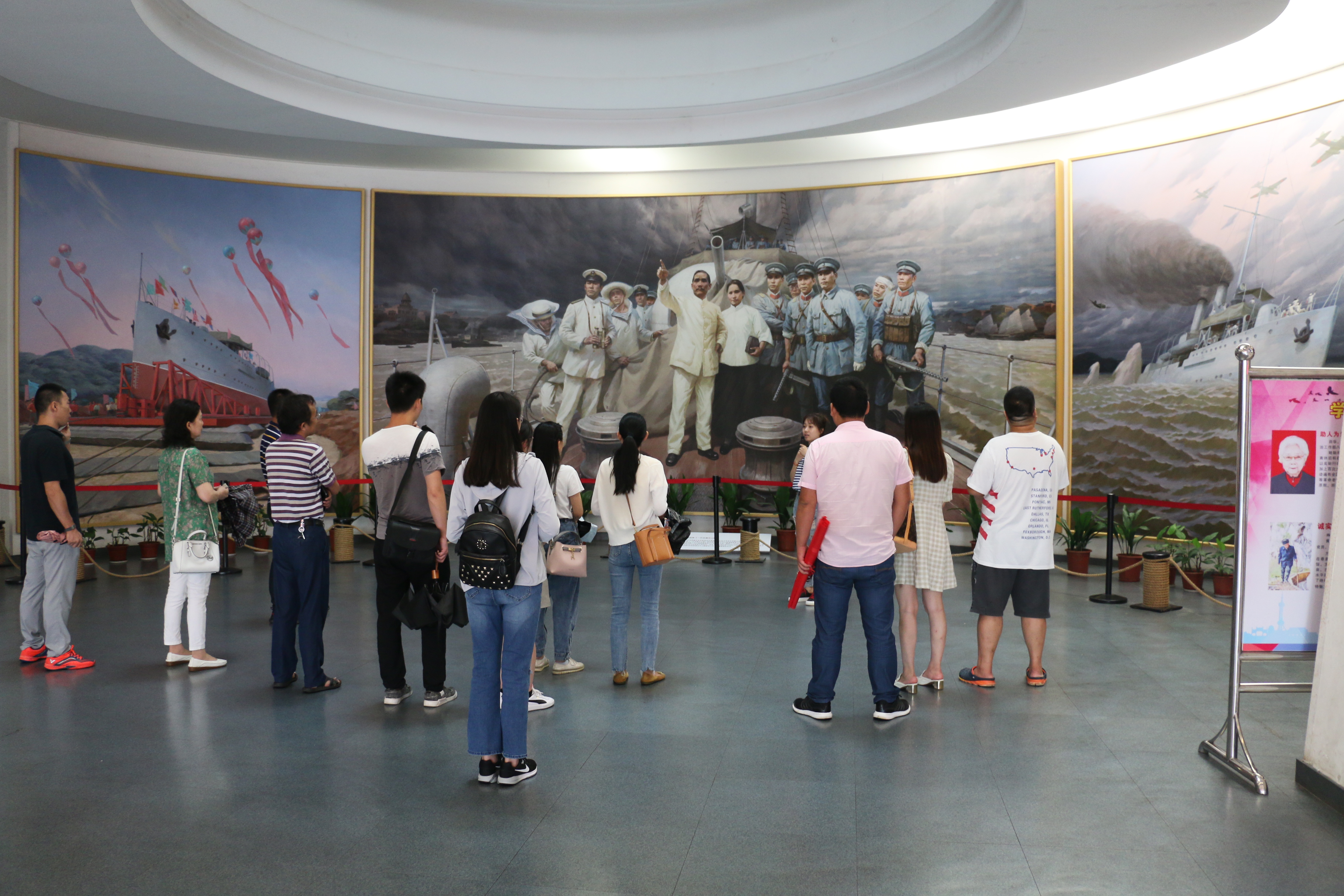 走近中山舰博物馆首先映入眼帘的是一幅武昌起义的浮雕,大家伫立在浮雕前,缅怀着先烈。接着我们看到了中山舰,中山舰原名永丰舰,在其26年的服役过程中,经历了护国运动、孙中山广东罹难事件和武汉会战等众多历史事件,是中国近现代史特别是国民革命史上重要的历史见证物。 紧接着大家参观了中山舰出水文物精品陈列馆,看着一件件古老的历史文物,感觉一股沧桑的气息迎面扑来,仿佛把我们带入那个战争的年代。大家都感慨我们今天的幸福生活都是靠无数革命先辈用自己的鲜血换来的,我们应该珍惜这来之不易的幸福。