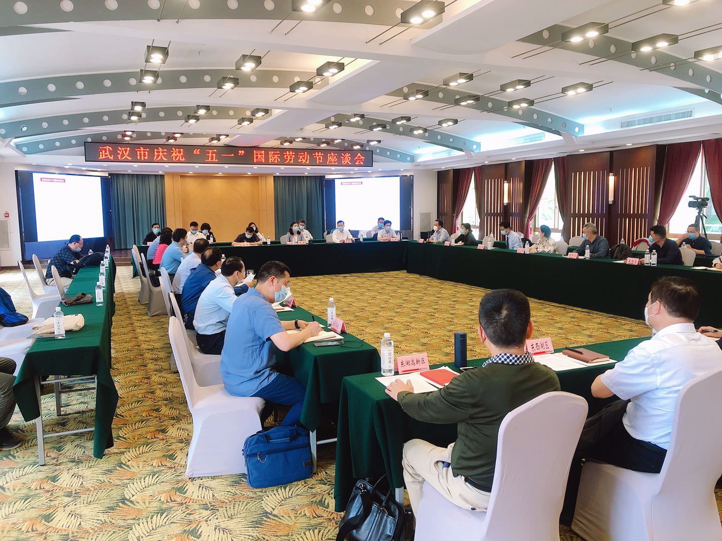 4月30日上午,为庆祝2020年“五一”国际劳动节,武汉市总工会在武汉职工疗养院(火神山医院)会议中心召开了武汉市庆 祝“五一”国际劳动节座谈会。