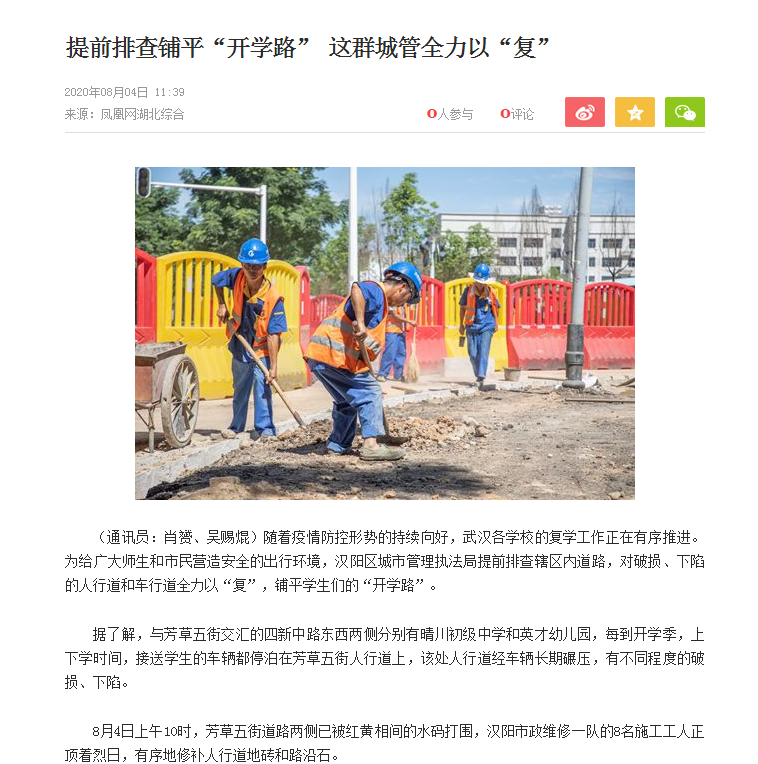 近日,汉阳市政维修一队负责的汉阳区内日常道路维修工作,先后受到汉阳知音、凤凰网湖北综合、长江日报等主流媒体的一致好评。此前,汉阳市政维修一队道路维修工作也曾多次获媒体正面报道。