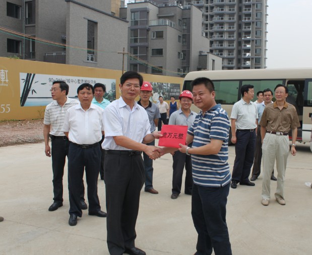 8月6日上午,汉阳区区委书记李诗伟、区长涂山峰等一行领导在区建设局领导的陪同下,来到芳草路桥梁工程施工现场慰问我博宏公司一线施工人员,并送上了慰问金。