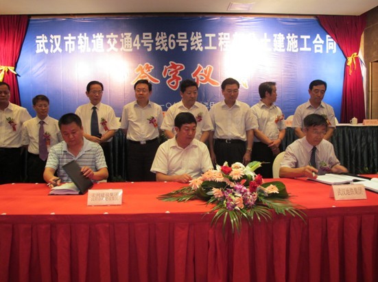 8月23日,武汉市轨道交通4号线6号线工程部分土建施工合同签字仪式在长江大酒店举行,总经理胡红胜作为公司代表为我公司中标的武汉市轨道交通四号线二期工程第八标段与武汉地铁集团签订合同。