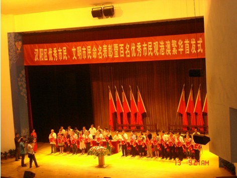 9月13日上午9时,由汉阳区委区政府组织的优秀市民、文明市民表彰会在汉阳财校举行,经过历时三个多月的全民评选,汉阳市政集团公司一公司彭骏同志、二公司周红同志被评为汉阳区优秀市民称号,并有幸参加港澳学习交流活动。(一公司 贾慧然)
