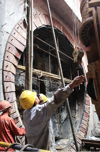 与第一次始发相比,虽然过程驾轻就熟,但由于工期紧张,地下施工人员面临了更为严峻的挑战,付出了更多的辛劳与汗水。从10月1日盾构机在中南路顺利单线进洞,时隔一个月,完成盾构机拆卸、转场、拼装、调式,铺轨道,搭建钢平台、钢支撑、反力架,洞门破除等工作。保证了盾构机顺利始发并掘进,并确保施工安全。