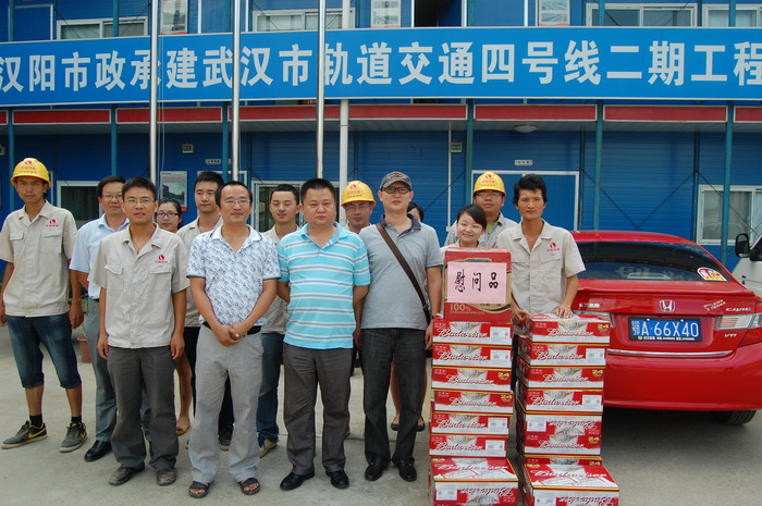 7 月 8 号,集团公司党委顶着烈日来到鹦鹉洲大桥、玫瑰苑地铁、福利院、惠民苑、开发区造纸东路等工地,向三伏天坚守一线施工的劳动者们表示亲切慰问,送去丝丝清凉。集团公司领导对不畏高温、坚持在一线辛勤工作的工人们表示问候和感谢,对他们拼搏奉献的敬业精神予以很高的赞赏,并送上了慰问品——风油精、人丹、绿豆、啤酒等。希望大家在努力工作的同时,注意休息,保重身体,避开高温时段作业,严防中暑。