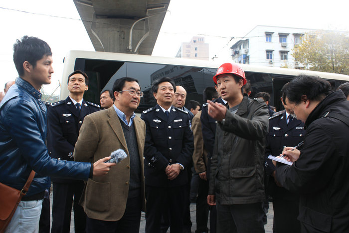 省政府副秘书长江作苏同志一行在湖北省公安厅副厅长周厚震等同志的陪同下视察武汉京汉大道跨武胜路立交工程项目。.jpg)