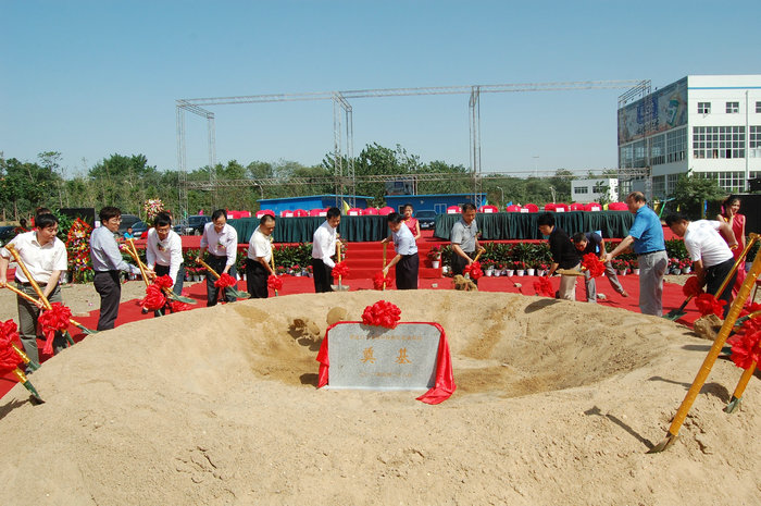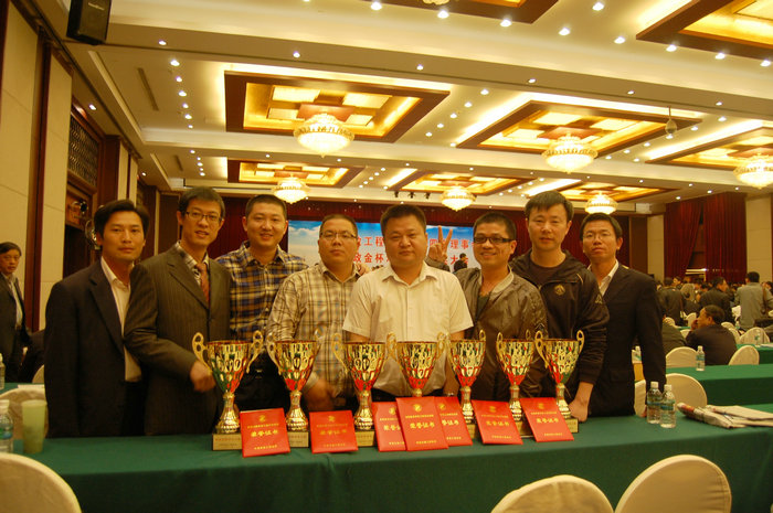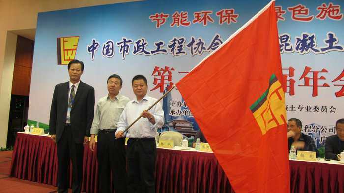 集团公司董事长胡红胜同志(左三)高举中国市政工程协会沥青混凝土专业委员会会旗