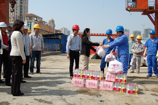 曹裕江书记一行亲切看望“五一”期间坚守岗位的一线建设者并发放慰问品 3月1日上午,汉阳区区委书记曹裕江一行莅临武汉市轨道交通三号线六标王家畈-蔡家湾项目部施工现场视察慰问,亲切看望了一线建设者并发放慰问品。汉阳区建设局局长严悌文、汉阳市政建设集体公司董事长胡红胜陪同参加了此次视察慰问。 视察中,曹裕江书记详细询问了工程建设情况,充分肯定了项目的建设进度与成果,高度赞扬了现场管理人员夏战酷暑,冬抗严寒,节假日仍坚守岗位的优秀品质,同时鼓励现场施工人员继续抓品质、保工期、促效益,为武汉轨道交通的建设做出新的贡献。