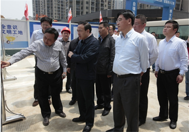 5月5日,武汉市市长唐良智、副市长张光清一行莅临博宏建设十升路道排工程施工现场检查指导工作。