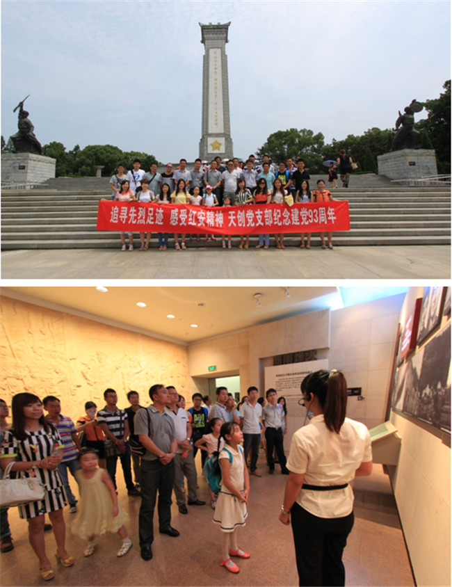 为纪念建党93周年,进一步推进公司党的群众路线教育实践活动,2014年8月22日上午8:00,天创公司党支部组织公司全体党员赴革命老区红安县开展了一次红色教育之旅。