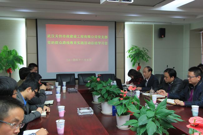 2014年11月17日下午16:00,天创公司党支部在会议室召开了党的群众路线教育实践活动总结学习会暨第四季度党风廉政建设专题学习会,公司支部班子及全体党员同志共计38人参加了此次会议。