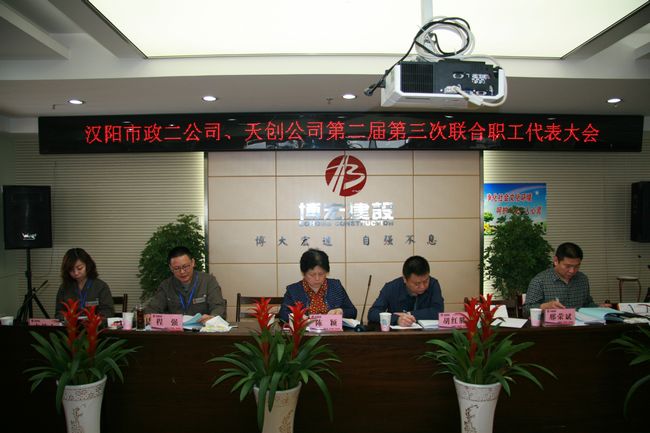 2015 年 4月 16日上午 9: 00,汉阳市政二公司、天创公司第二届第三次联合职工代表大会在闽东国际 26楼会议室召开。大会应到职工代表 39人,实到 38人。色情直播