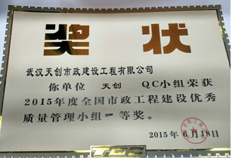 6月24至25日,全国市政建设优秀QC小组成果发布会在西安举办。在此次发布会上,天创公司QC成果——“提高高黏高弹应力吸收层施工质量”从全国300余件作品中脱颖而出,荣获优秀成果一等奖,这也是汉阳市政集团公司在本次QC活动中所斩获的唯一一项全国一等奖。