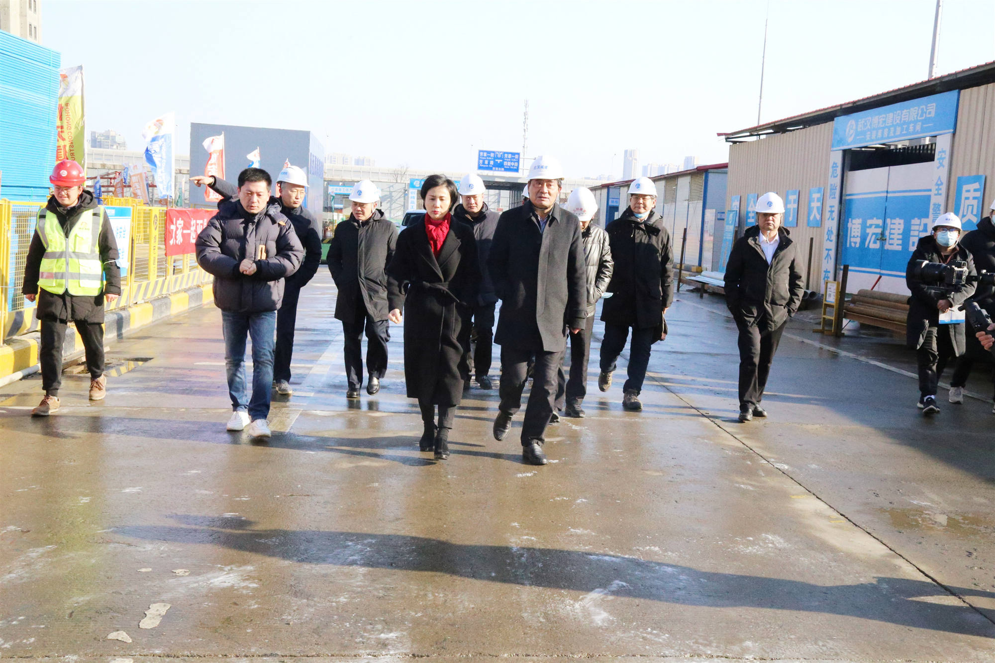 12月30日上午,由汉阳市政博宏公司承建的汉阳市政建设大厦迎来一次工地现场安全生产检查,这是汉阳“工地革命”调研工作的第一站。武汉市城建局党组书记、局长夏平,党组成员、副局长荣先国,质安处、建管处、安全站主要负责人;汉阳区委书记徐丽,区政府副区长蔡松,区建设局等相关单位负责人参加调研检查,汉阳市政党委书记、董事长严悌文等陪同调研。