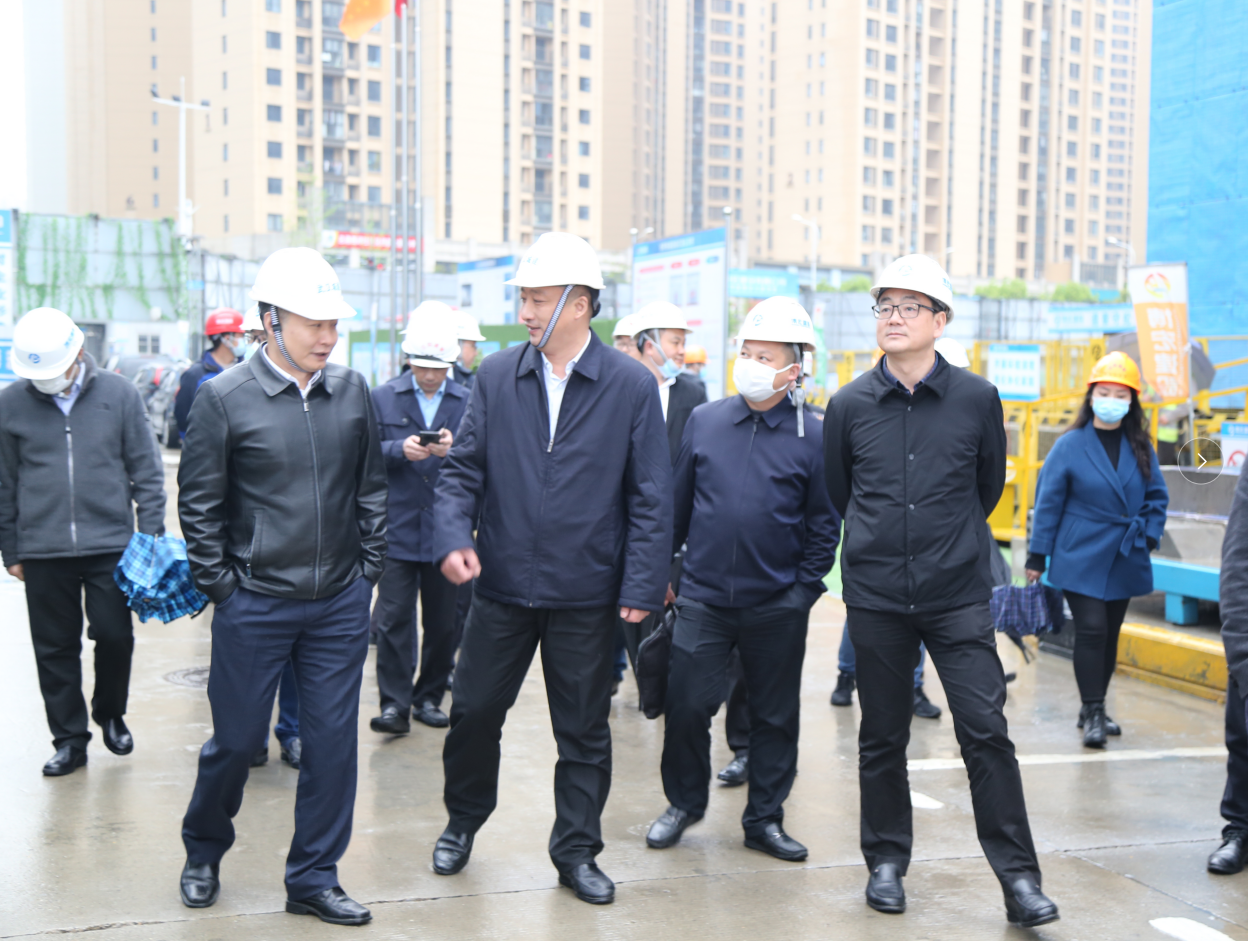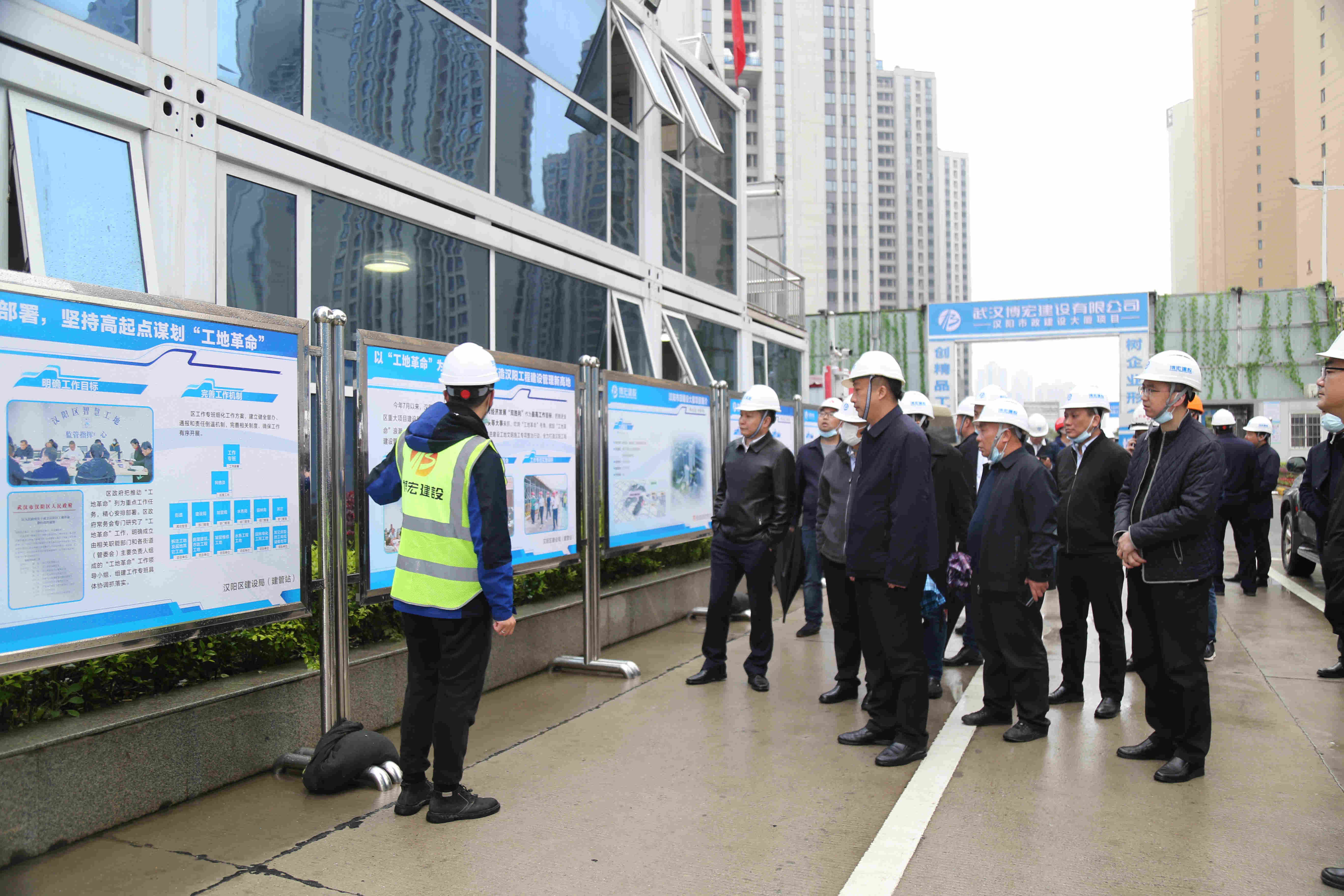 在汉阳市政建设大厦项目现场,仙桃市人民政府副市长徐国亮对现场安全文明施工管理情况进行观摩,就项目绿色建造、疫情防控、工地革命、技术创新等各项工作进行了解。