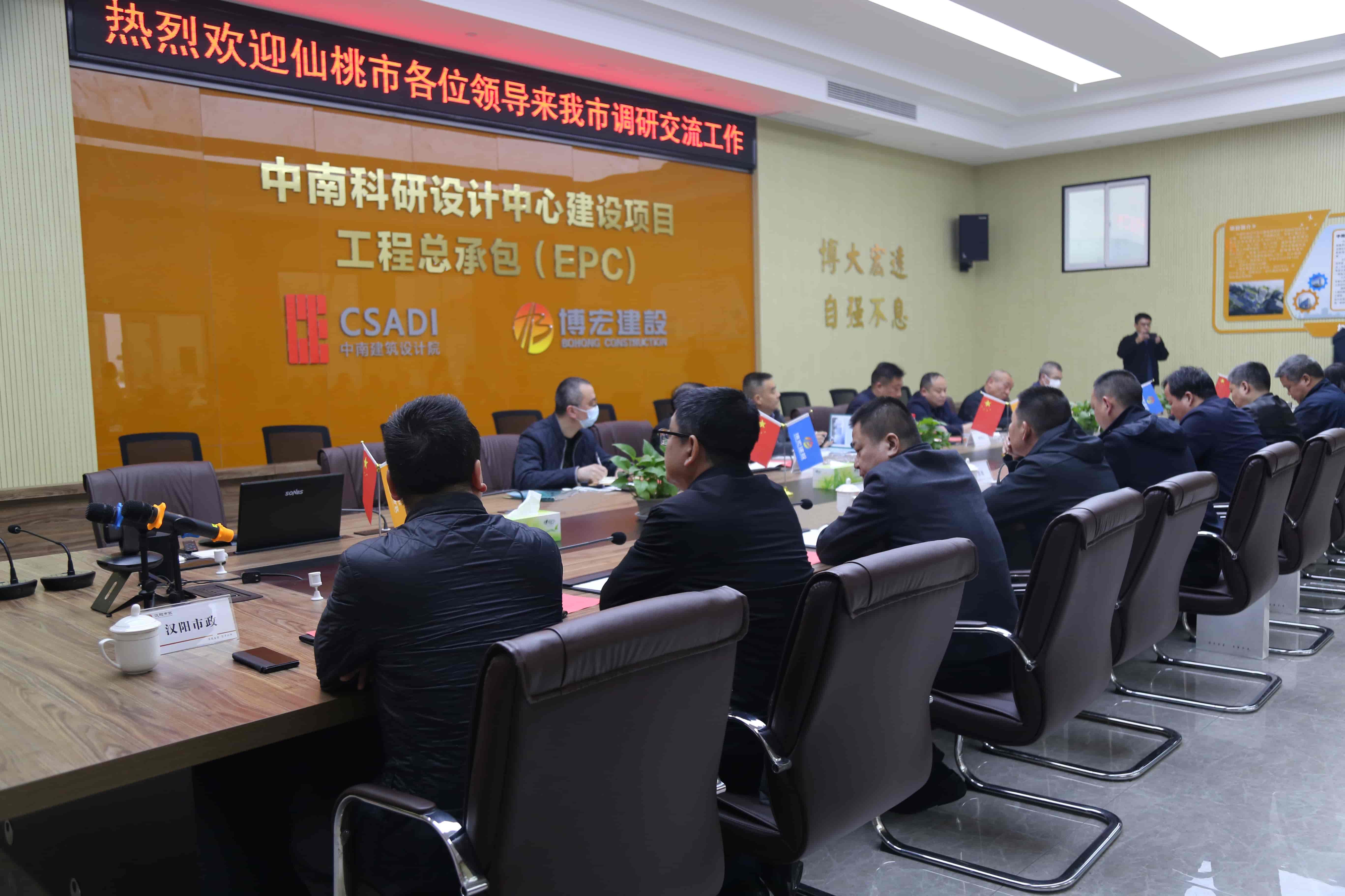 现场调研结束后,调研座谈会在中南科研设计中心项目部举行。仙桃市人民政府、仙桃市住建局与武汉市城建局、汉阳区建设局、汉阳市政等单位代表共同参会。