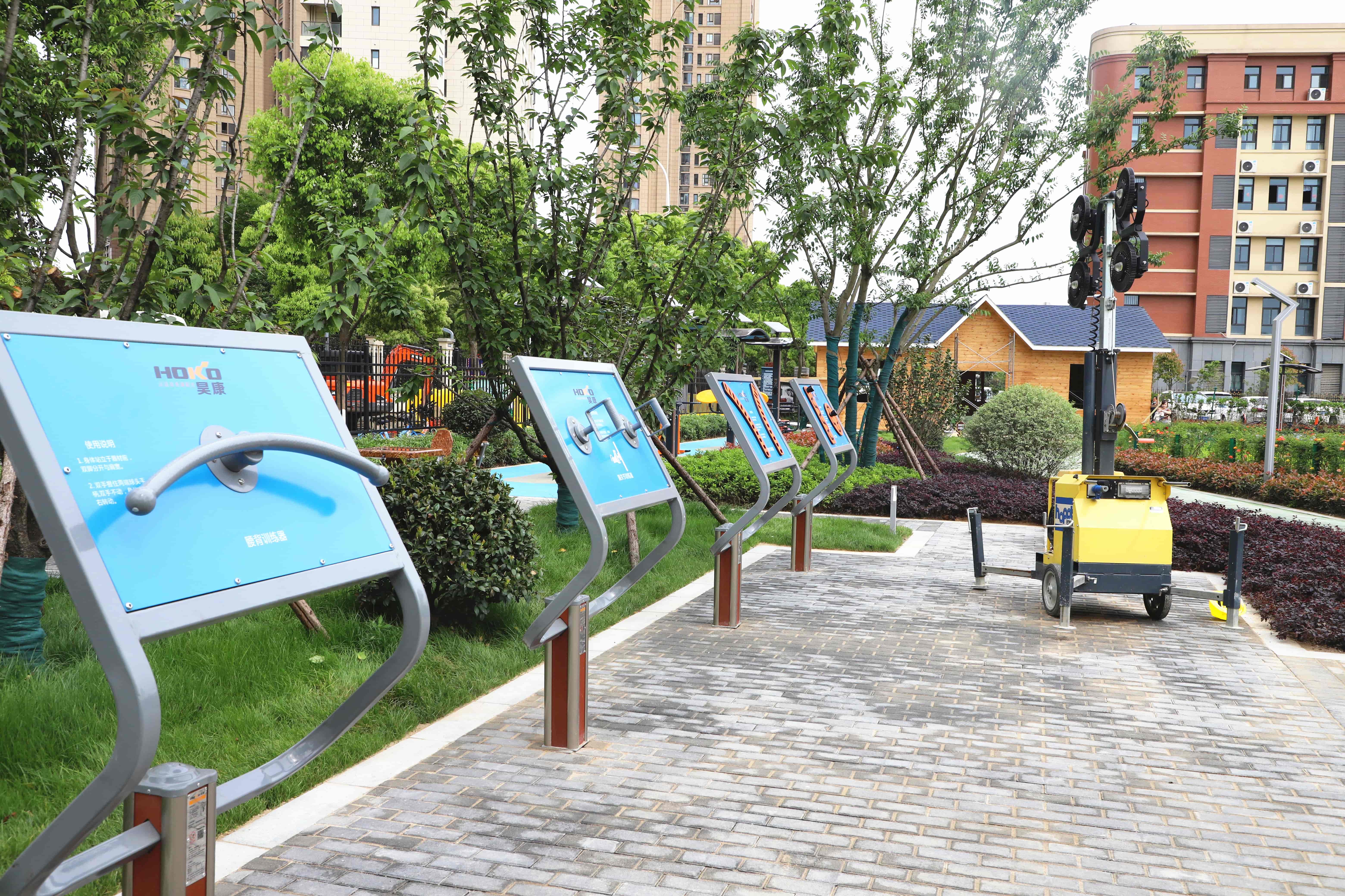 公园沿路设有各种类型的健身器材,可以满足健身爱好者的各种需求。
