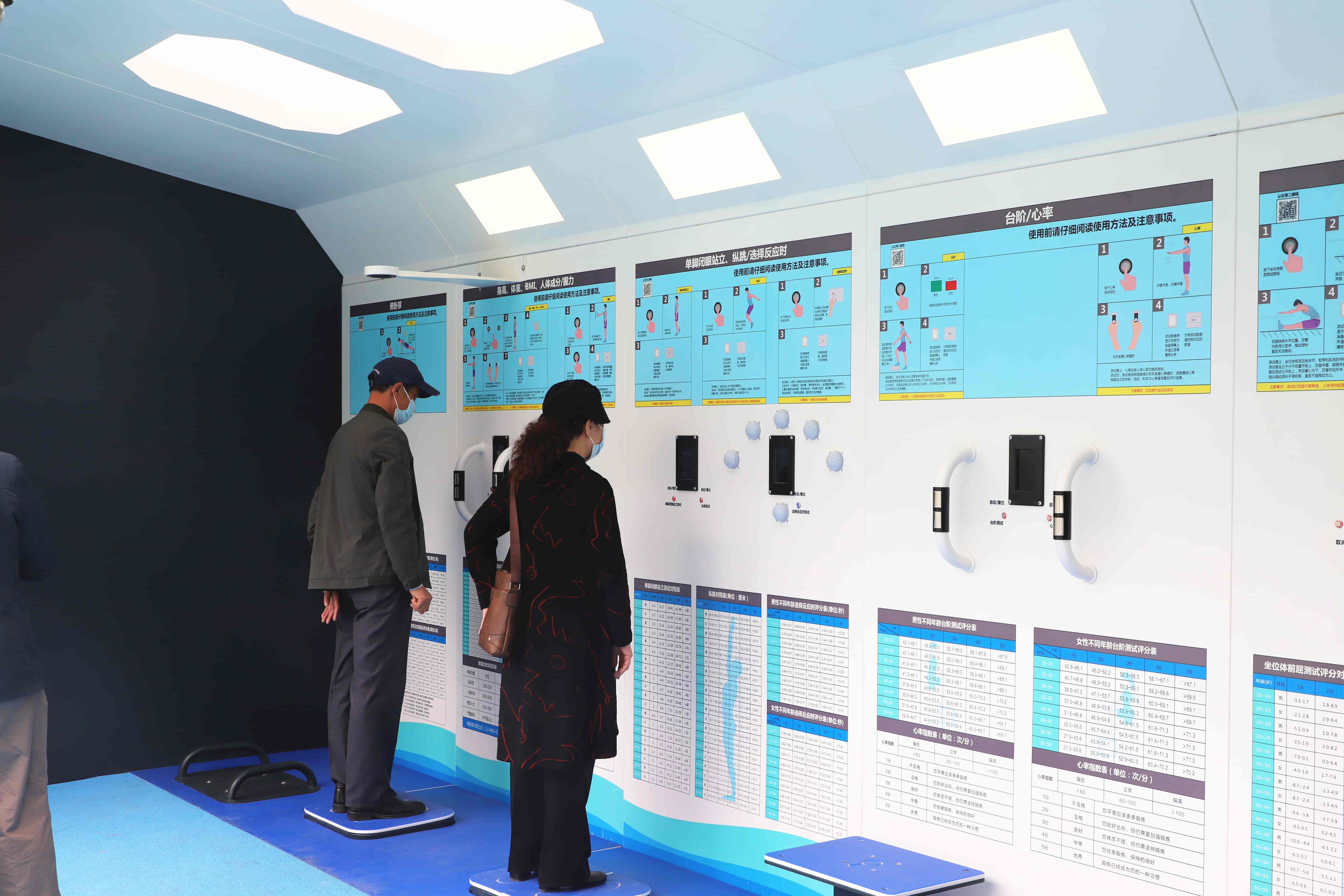张之洞体育公园作为公共性的服务设施,园中设有智能健身步道环,身高体重、BMI、坐位体前屈和闭眼单脚站立的全民健身体测舱,琴声全民健身广场和江楚青少年健身区等免费开放区域。在智能体检舱,居民可使用微信自行扫描器材旁边的二维码,按照提示完成相应的检测。检测结果会以语音播报和电子显示屏两种方式同时展示,数据精准详实,堪比专业的体测报告,以最为高效便捷的方式让测试者得到体测信息,从而更好地进行体育锻炼。