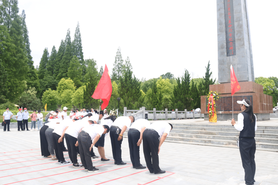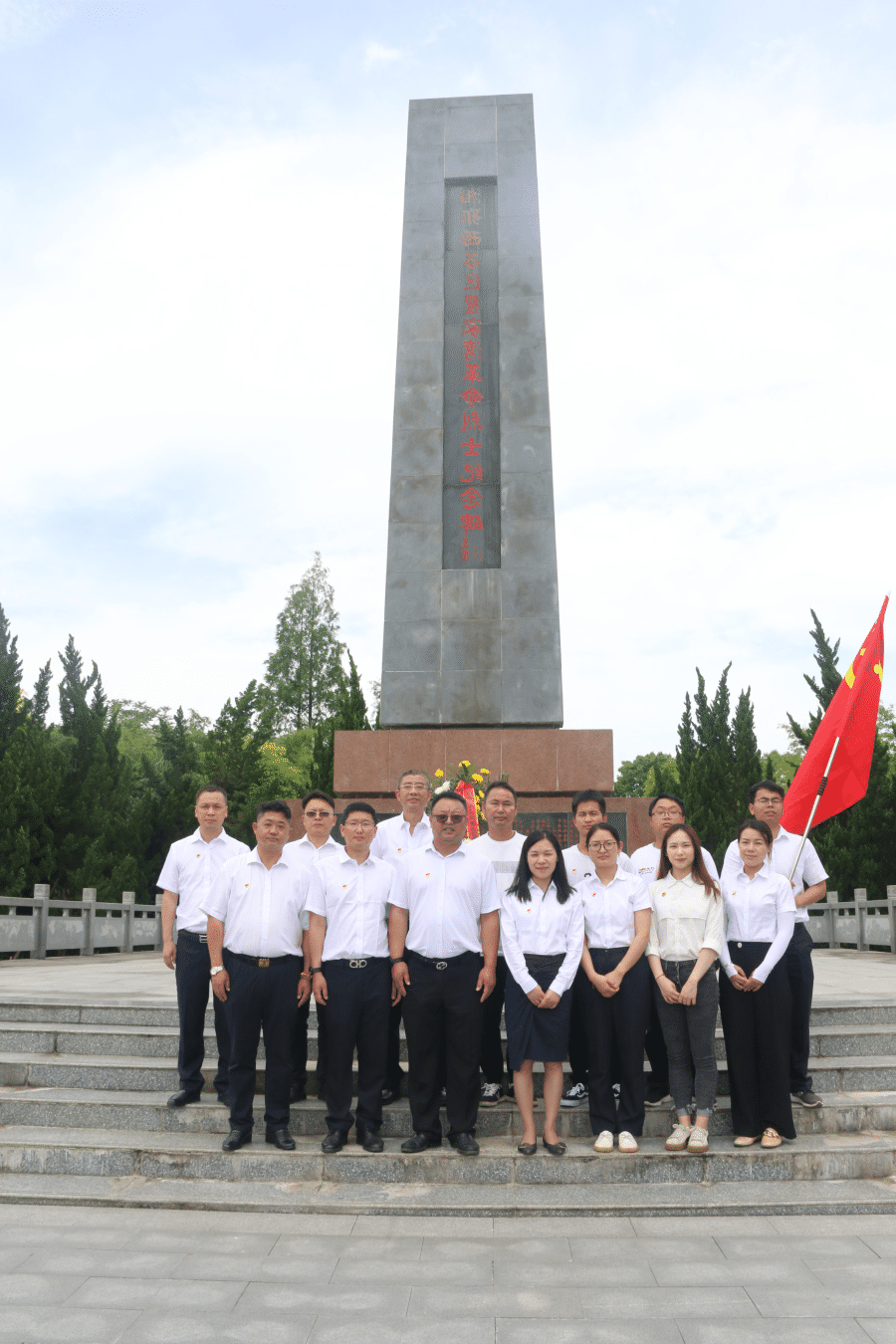 向人民英雄敬献花篮仪式,在瞿家湾烈士陵园纪念碑前举行。全体党员深深鞠躬,怀着敬仰之情,向革命烈士默哀。