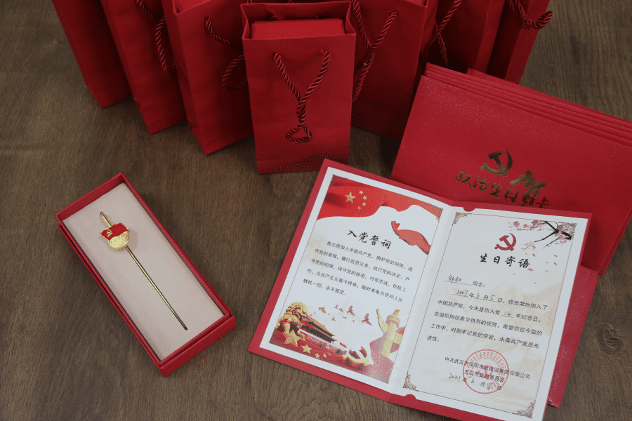 参观完革命旧址,大家来到河边空地,进行政治生日仪式。“这是我47年来最特殊的一次‘生日’,而这张精美的‘生日贺卡’,承载着党组织对我的信任和期望。”樊成霖同志在生日感言中说。