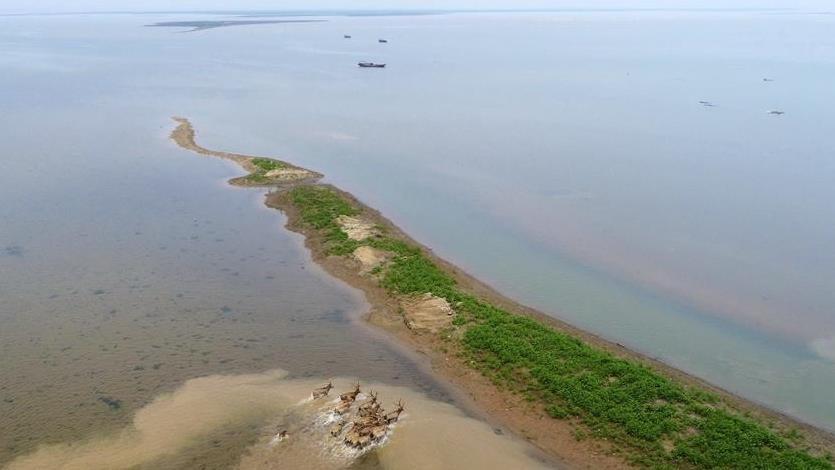 被野放的麋鹿在江西鄱阳湖湿地奔跑(来源:新华网)