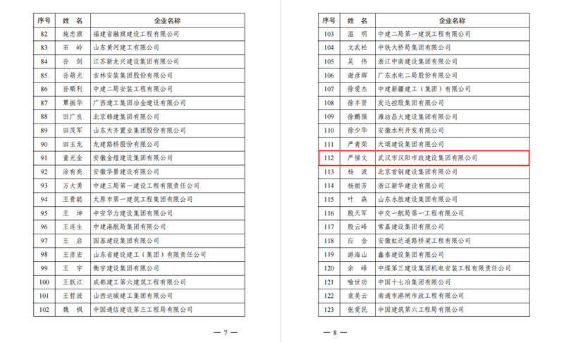 近日,中国施工企业管理协会传来好消息,汉阳市政党委书记、董事长严悌文荣获“2021年工程建设诚信企业家”,汉阳市政七公司总工程师罗艳明荣获“2021年工程建设诚信项目经理”。