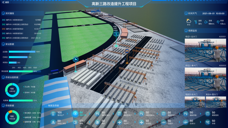 项目以“人工智能应用”为主,以“大数据智能化”为引领,构建“智慧交通、智慧桥梁、智慧水务、智慧管网、智慧路灯”五大智慧工程。项目以BIM+GIS技术打造的高精度数字模型为依托,采用预制装配式连续结构及智能机械化设备,让智慧建造推动项目建设智能、高效。项目创新应用“项目协同管理平台”、“智慧梁场系统”,延伸“项目信息化办公平台”,打造工地智慧运维大脑。