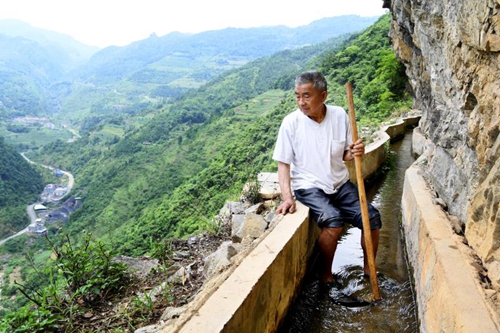 我从当上村干部的那一天起,就立下誓言,要为乡亲们干三件事:引水、修路、通电。我用了整整36年时间,带领乡亲们在莽莽深山中修了一条水渠,这条水渠绕过3座山头、穿过3道绝壁,引来清亮甘甜的清泉,滋润了祖祖辈辈干渴贫穷的草王坝村,我因此被乡亲们称为“当代愚公”。