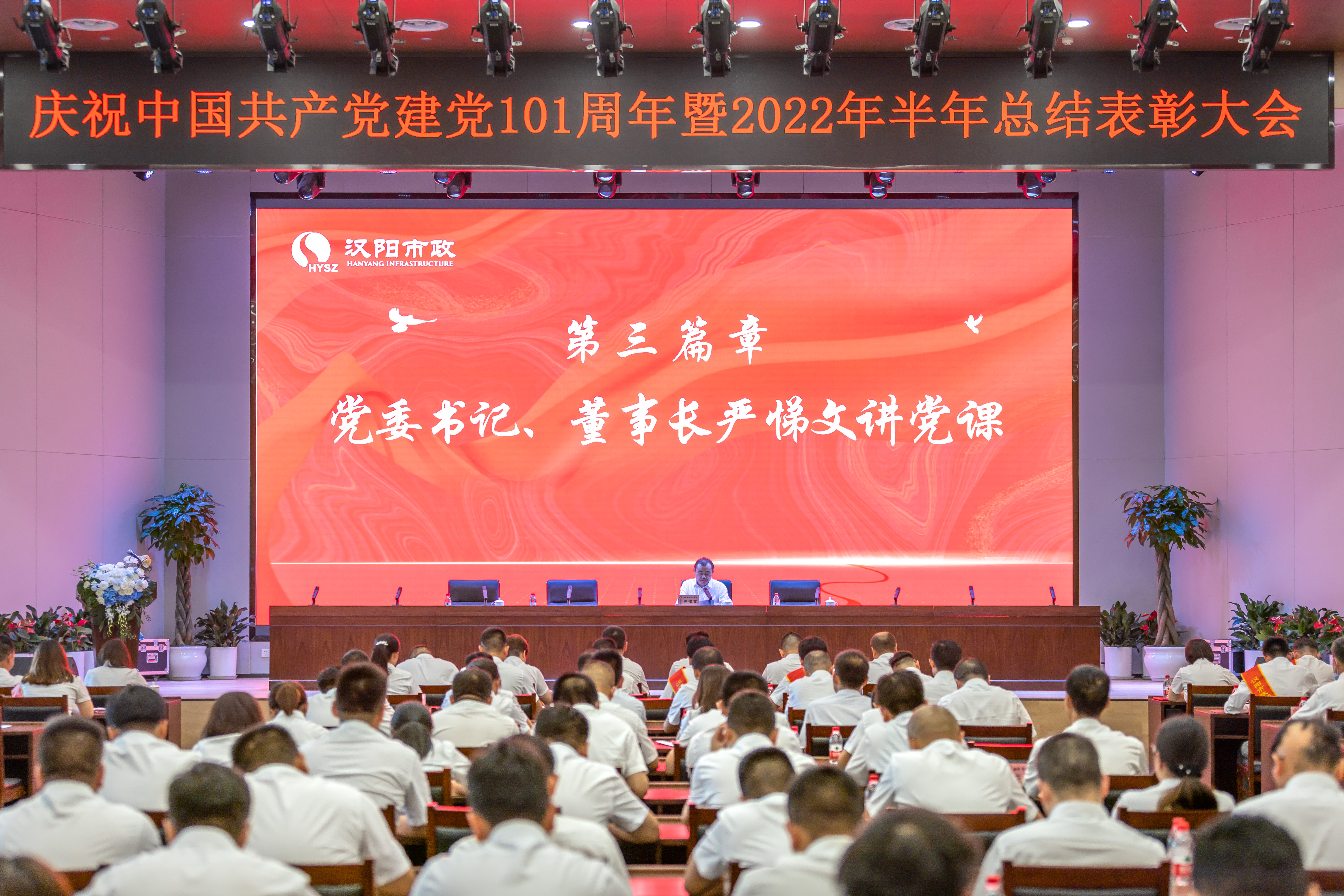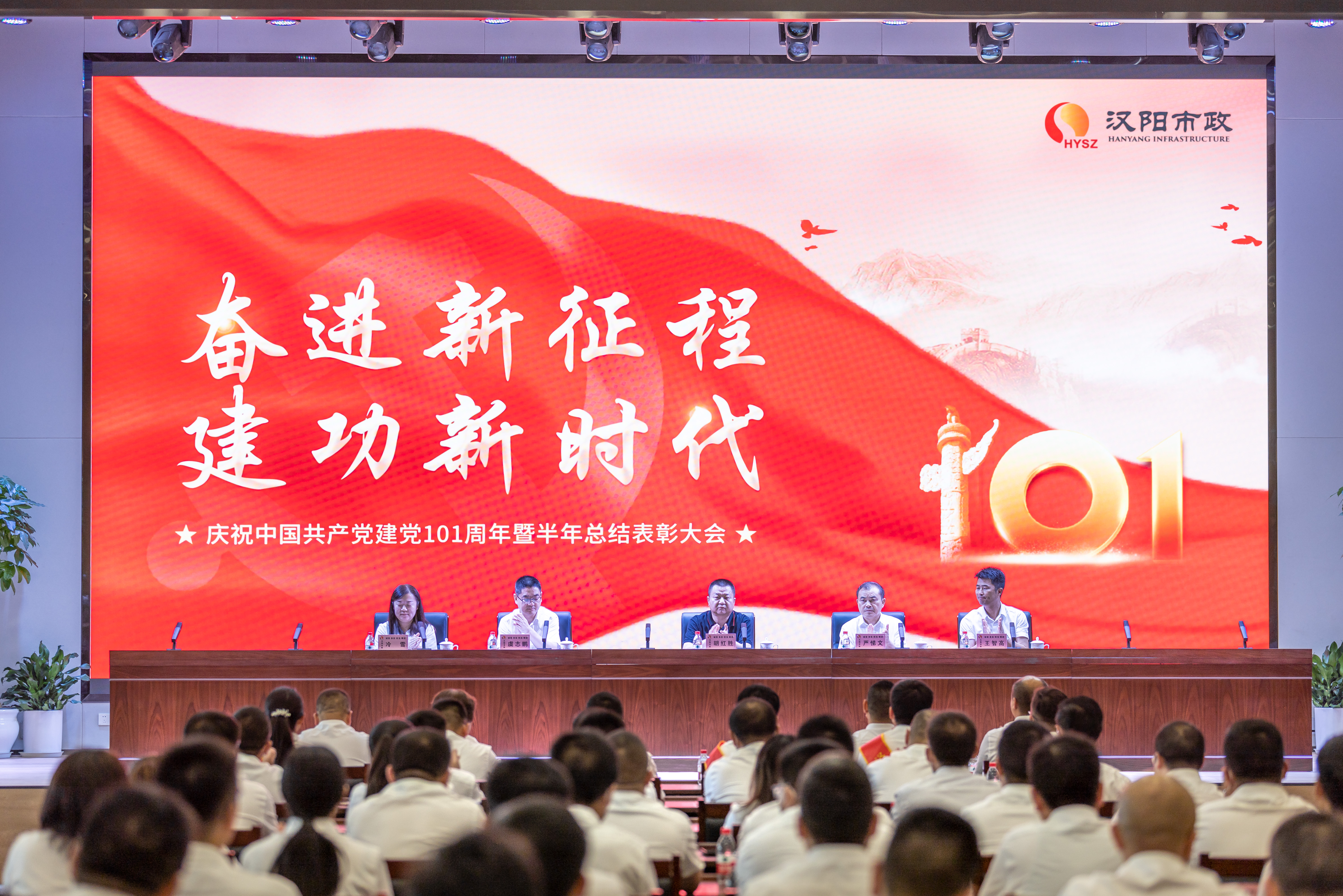 奋进新征程,建功新时代。2022年是中国共产党建党101周年,也是汉阳市政“十四五战略”规划的关键之年。为庆祝中国共产党建党101周年,弘扬伟大建党精神,汉阳市政于6月30日隆重集会,全面总结公司2022年上半年各项工作,表彰2022年优秀党务工作者、优秀共产党员、先进基层党组织和劳动模范、市政匠人、劳动标兵,以及奋发有为好青年。