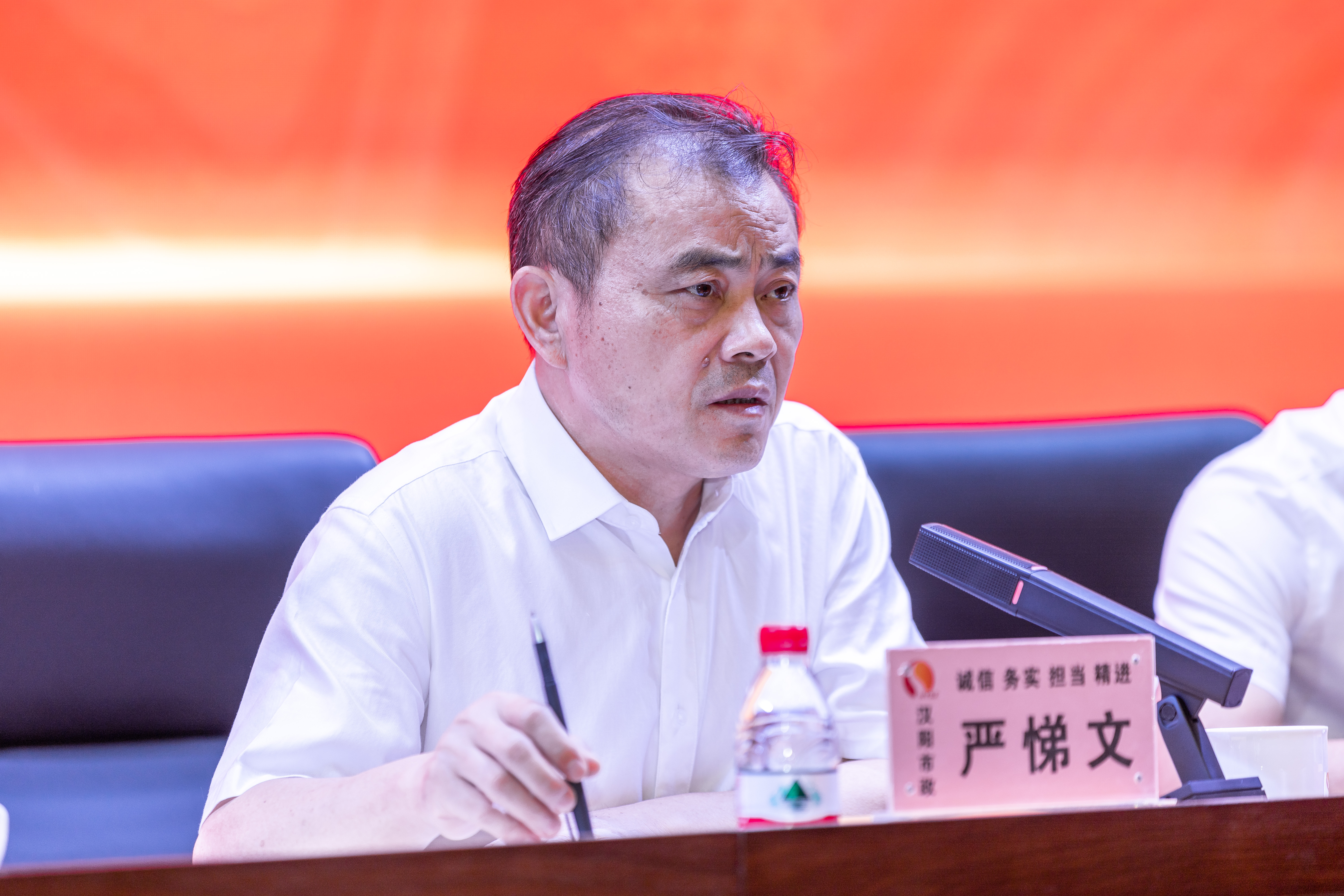 汉阳城建、汉阳市政党委书记、董事长严悌文发表讲话,他首先为公司上半年经营产值创造历史新高、乔迁新址再启新程、顺利经受巡察考验等感到振奋。同时,他表示,今年仍是充满挑战的一年,面对不容乐观的经济形势,更要迎难而上、奋力拼搏,抓住机遇、坚定信心、走向胜利。他提到,汉阳市政“自信坚韧、精诚团结、忠诚奉献”的企业精神代代相承,所有干部职工要团结奋斗,成就汉阳市政基业长青。严悌文用“施舍、法规、忍辱、精进、定力、智慧”这6个词语来阐释修行的方法精要,勉励大家要不断为社会、为自我提升。最后,他对所有干部职工提出三点要求:一是要更加重视安全问题,要有杜绝问题的决心、措施和资金保障;二是走出去的步伐要加快,并做好迎接挑战的充分准备;三是预祝各公司超额完成全年目标,赢得全年精彩!