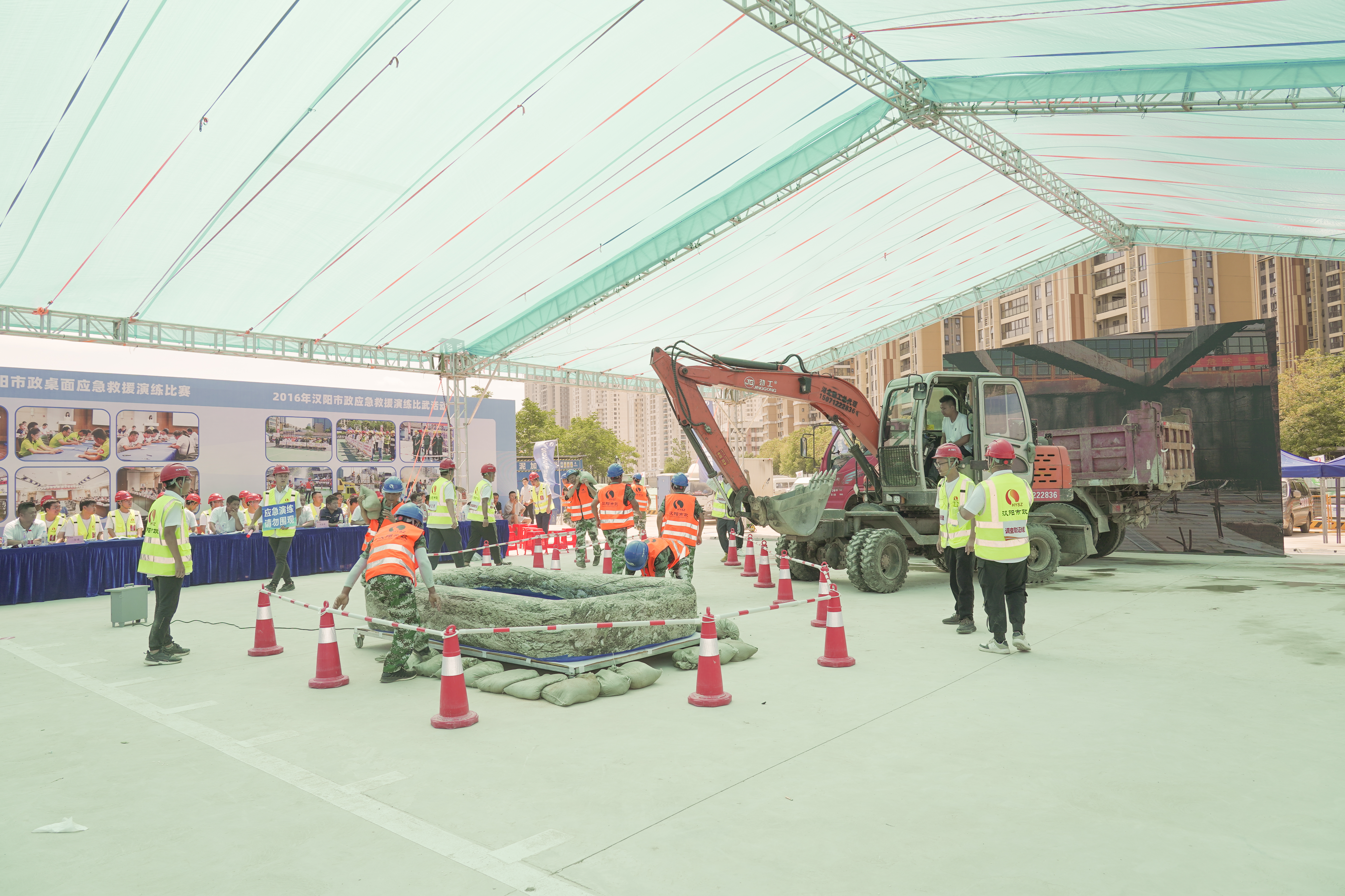 6月27日上午,汉阳市政在汉江南岸综合治理项目部开展2022年安全应急救援技能比武大赛。本次比赛由武汉市汉阳区国有资产监督管理局主办,汉阳市政承办、天创建设协办。湖北省建设工程质量安全监督站站长杨碧华、湖北省住房和城乡建设厅质安处副处长帅元新、武汉市城乡建设局质安处廉新斌、武汉市建设工程安全监督站阎鹏,汉阳区应急管理局局长李汉光、区建设局局长胡红胜、区国资局副局长高明、区建筑管理站站长王晟,汉阳市政总经理王智高、总工程师荆武等出席活动。