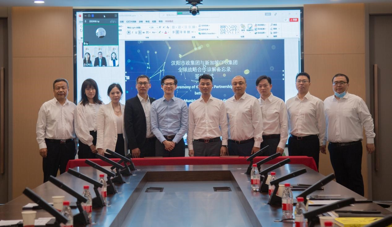 汉阳市政总经理王智高,副总经理郭伟,经营公司、设计公司代表;新加坡CPG国际副总裁、CPG集团上海总经理严兴龙出席了本次会议。CPG集团首席运营官郭仁全通过线上会议参与见证了签约仪式的全过程。