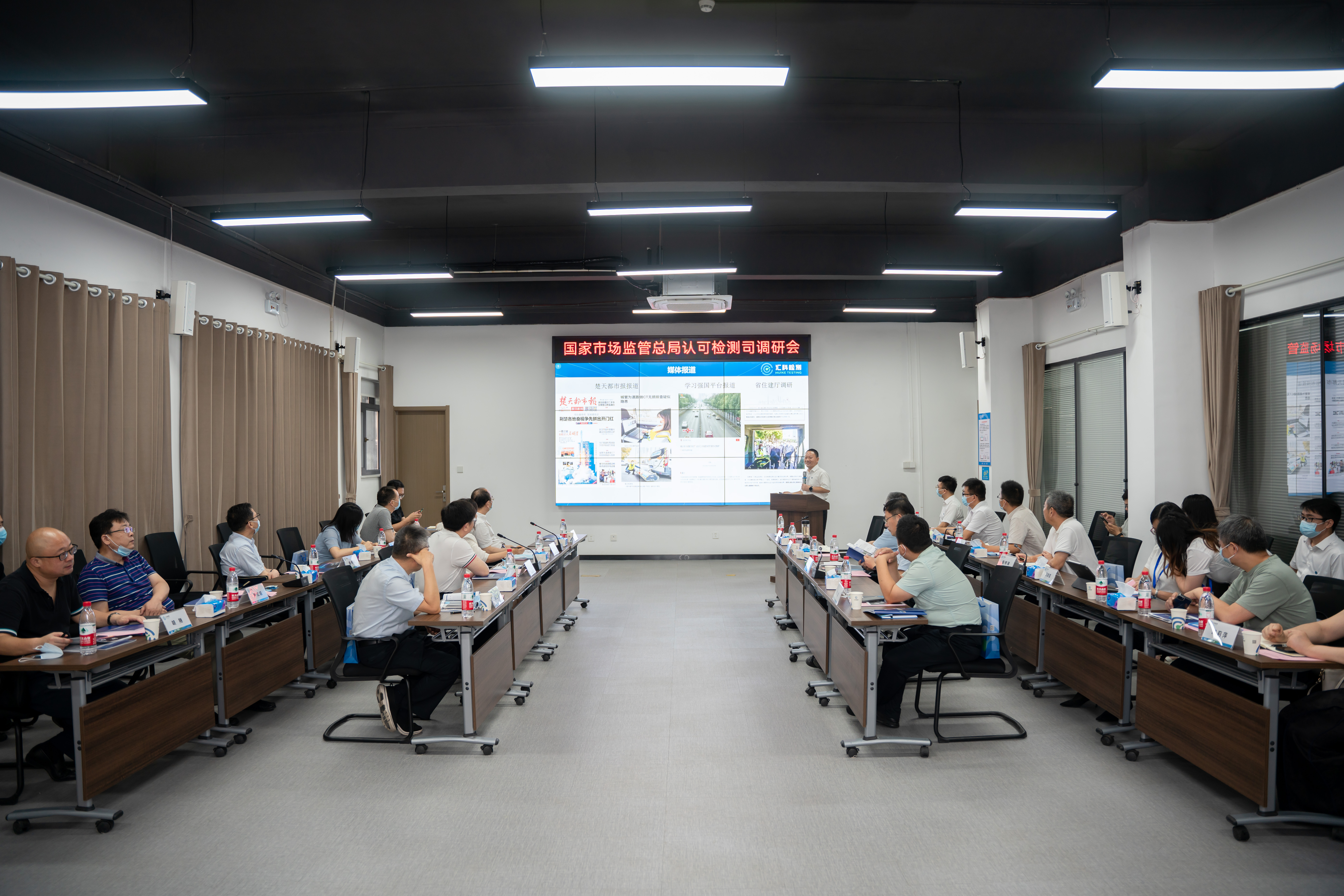 7月20日,国家市场监管总局认可监测司二级巡视员李文龙、公共服务机构处处长陆增一行到武汉汇科质量检测有限责任公司调研。汉阳区人民政府副区长赵亮、汉阳区市场监督管理局局长施韦先、副局长张明强等陪同,汉阳市政总工程师、检测公司董事长荆武主持调研会议。