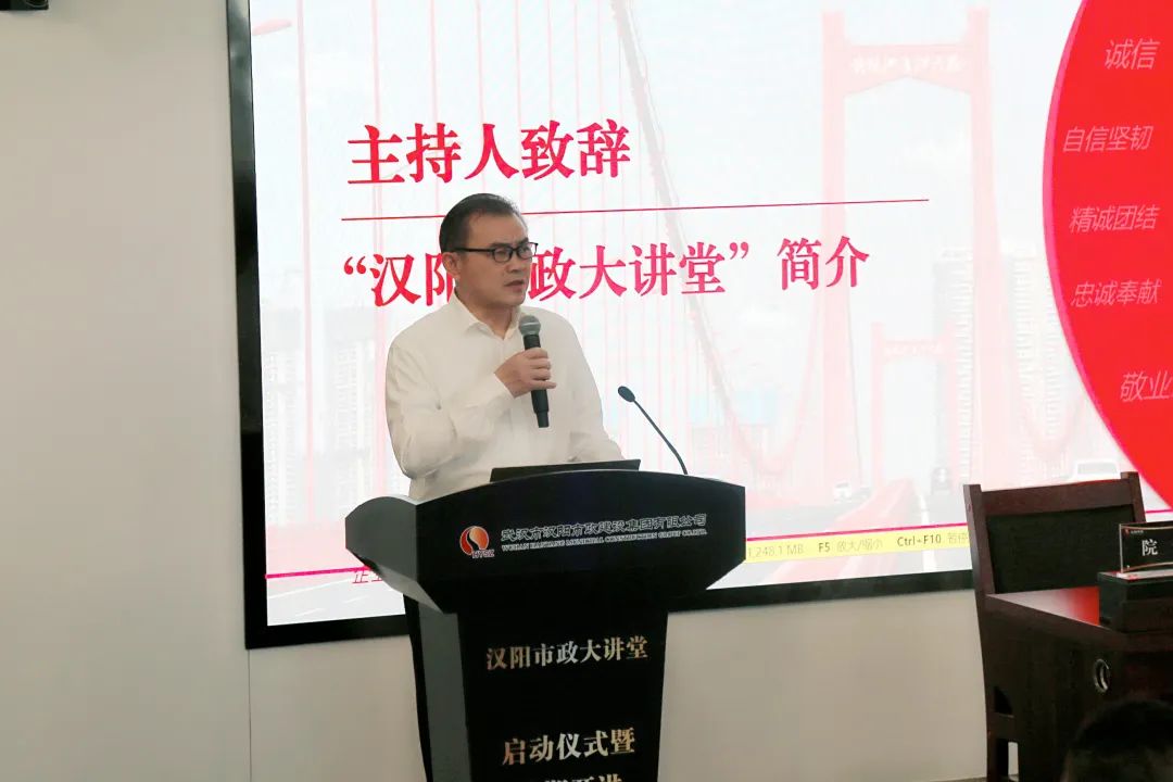 “汉阳市政大讲堂”院长严悌文发表讲话。严悌文从公司发展的需要、员工交流学习的需要、经验沉淀的需要以及人才成长的需要等四个方面阐述了“汉阳市政大讲堂”成立的初衷;同时,对“汉阳市政大讲堂”提出了期望:一是搭体系、建平台,将“汉阳市政大讲堂”打造成具有公司特色的培训品牌;二是培养一批优秀的讲师,讲好汉阳市政故事,传承汉阳市政经验。