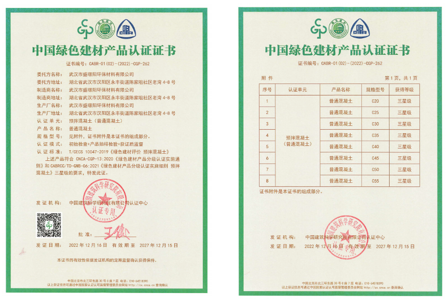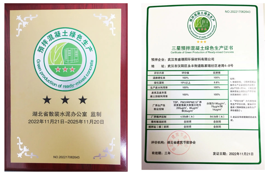 近日,喜报传来,汉阳市政盛璟阳公司顺利通过评审程序,相继取得了“三星预拌混凝土绿色生产评价证书”及“绿色建材三星认证证书”,成为一家荣获“绿色生产+绿色建材”双三星认证企业。