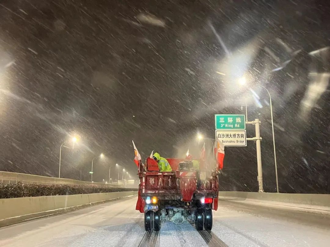 早在2022年12月,汉阳市政根据武汉市融雪防冻指挥部指令及相关文件精神,结合实际,制定《汉阳市政融雪防冻应急预案》,成立应急指挥部,明确各单位各部门职责,提前做好应急备勤、除雪支援储备和供给,全面提供绿色环保融雪理念,最大限度降低工业盐适用范围频次,在跨江桥、高架桥、弯道、隧道和坡道等重要交通点位使用融雪剂融雪,延长道路使用寿命。