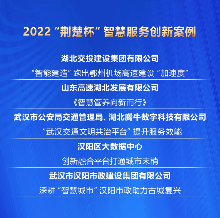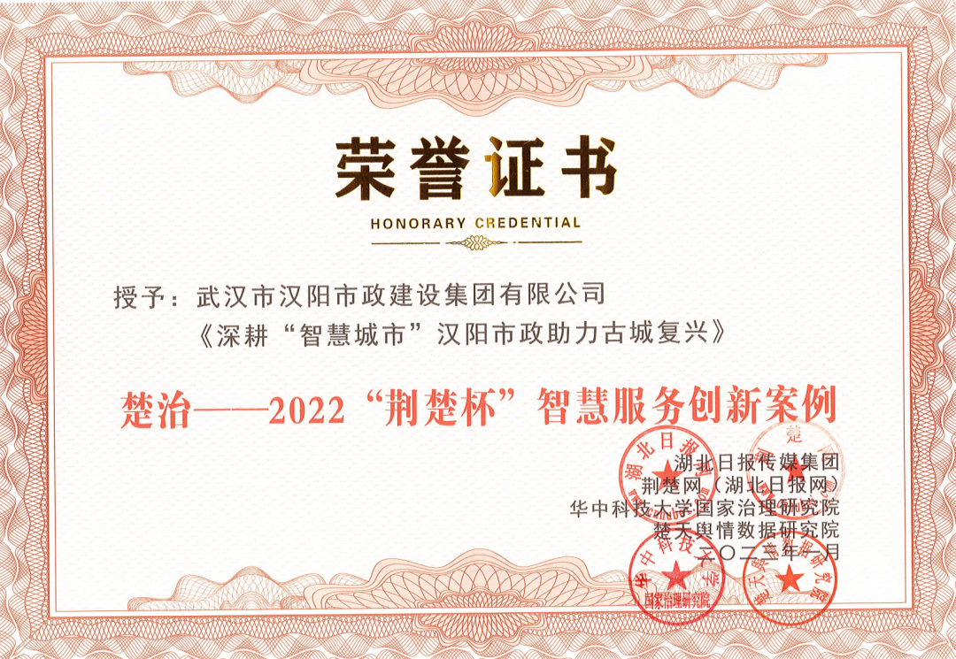 2月16日,由湖北日报传媒集团主办,荆楚网(湖北日报网)、华中科技大学国家治理研究院和楚天舆情数据研究院承办的“楚治——2022‘荆楚杯’社会治理创新十大案例”公布获奖名单,由汉阳市政申报的汉阳智慧城建一体化平台项目案例被评选为智慧服务创新案例。