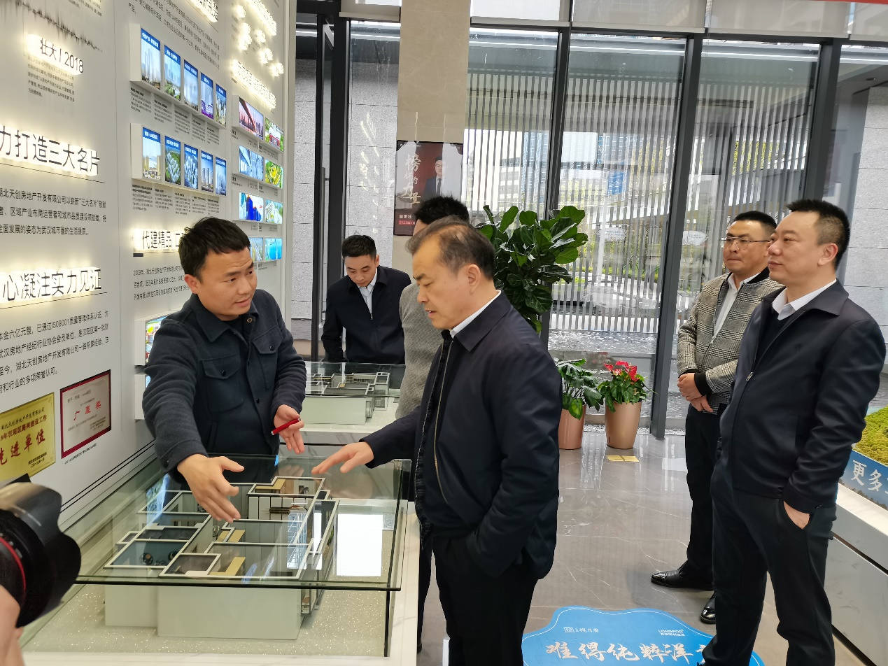 3月21日,汉阳城建党委书记、董事长严悌文一行莅临宜昌天创·揽月府及天创·望江樾项目现场,检查项目建设、营销等工作进展情况。汉阳市政集团总经理王智高,集团常务副总经理、天创地产董事长钱涛,集团总经理助理彭骏;博宏建设董事长邹勇,党委副书记郭一清;天创地产副总经理陈伟等陪同检查。