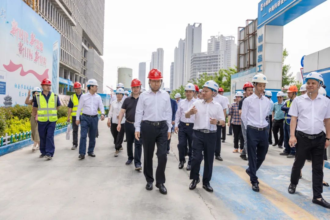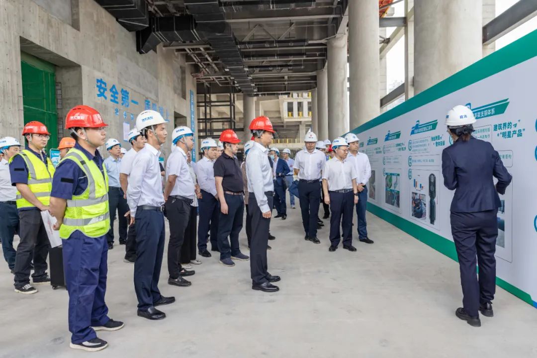 刘雪荣一行实地考察了中南科研设计中心施工现场,通过讲解互动和实地观摩,全方位了解了项目在新技术应用、安全质量管控、标准化建设、智能化管理等方面的亮点与成效。调研组对施工现场BIM信息技术应用、构件二维码上墙等创新举措表示认可,充分肯定项目通过物联网设备实时采集环境数据,太阳能供电系统、盘扣支架通道,消防水系统与照明系统永临结合等环保举措,希望项目团队继续攻坚克难,为推动武汉打造“工程设计之都”作出更大贡献。