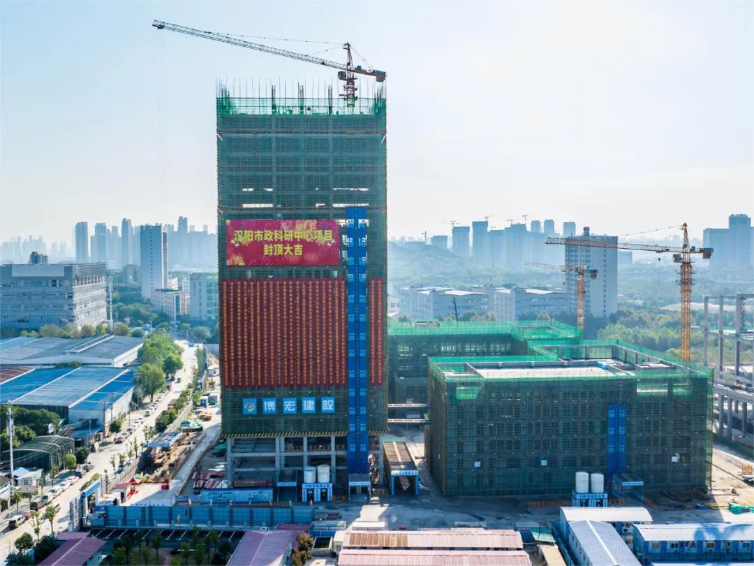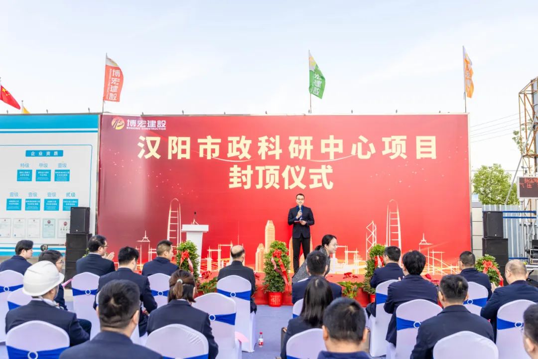 2023年11月8日上午,汉阳市政科研中心封顶仪式在项目现场隆重举行。汉阳区国资局党组书记、局长严俊,汉阳区建设局党组成员、汉阳区建管站站长王晟,汉阳市政集团党委副书记、副董事长虞志鹏,总工程师荆武等领导,相关部门负责人以及项目一线建设者共计60余人共同见证项目封顶。