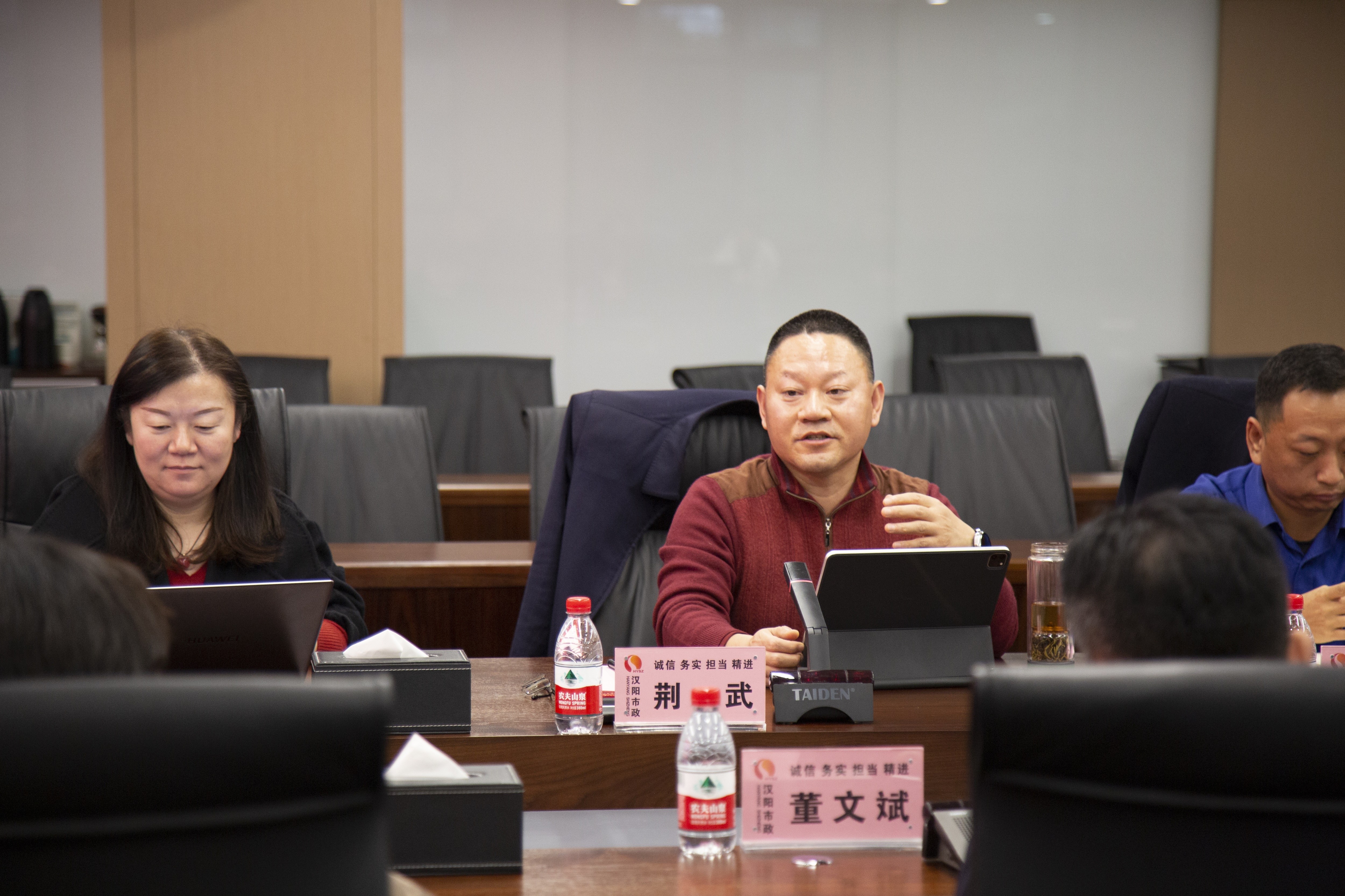 荆武向湖北建院授予汉阳市政“教师企业实践基地”和客座教授证书表达感谢,提出可以利用公司的项目和设备对学校进行开放式教学,欢迎学校为公司输送积极、有韧性的优秀人才。