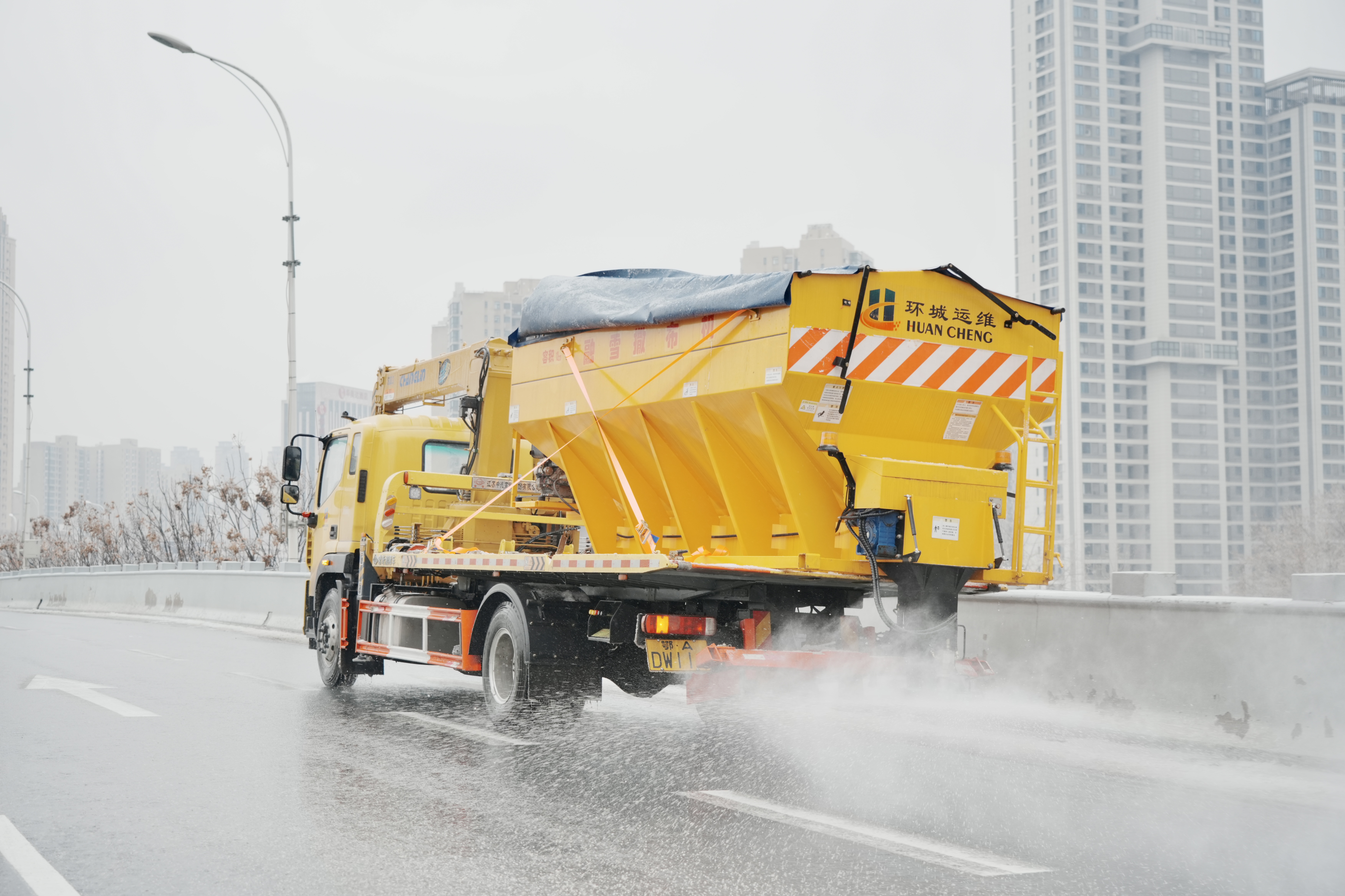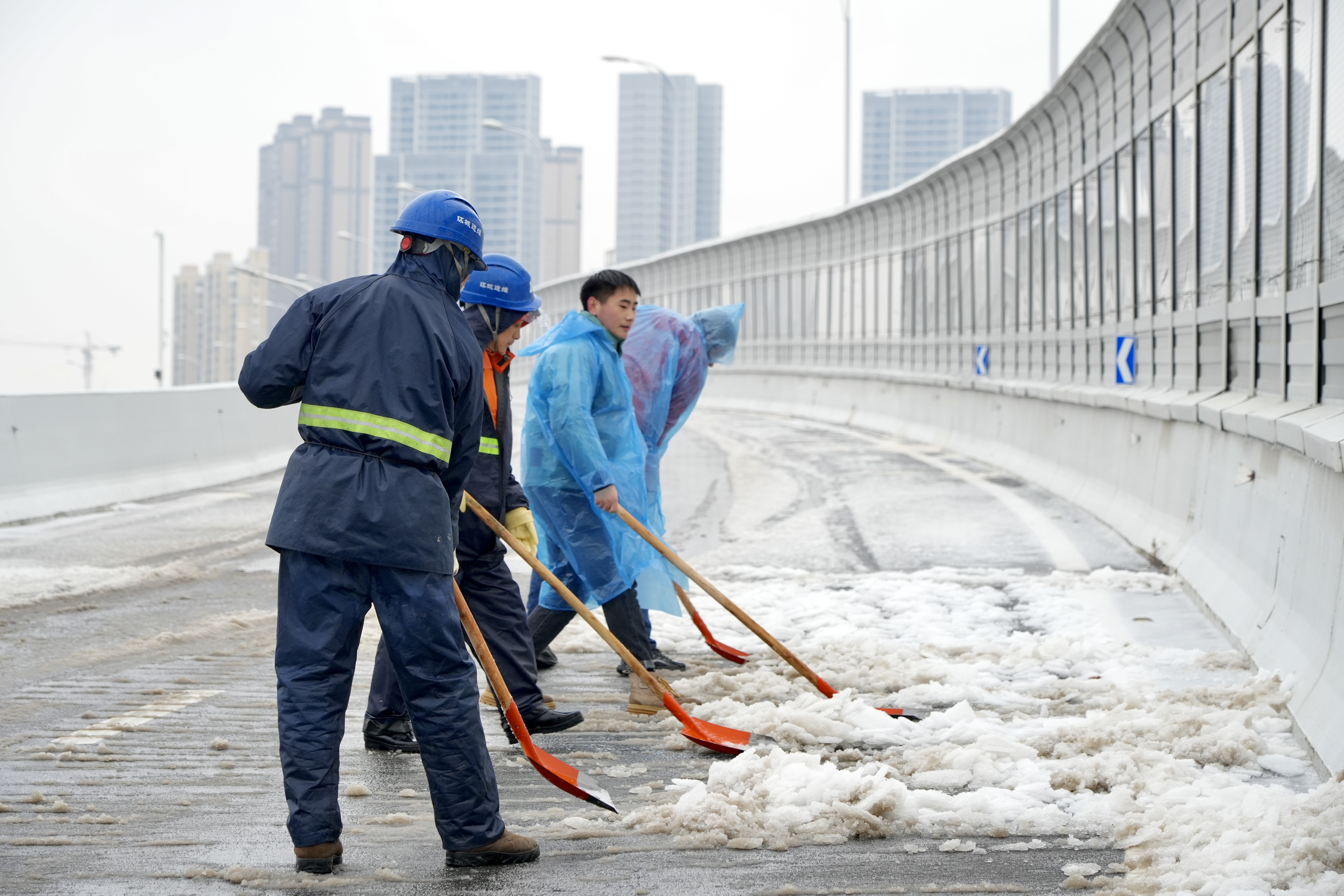 为尽快消除道路冰雪,大家以雪为令、分工合作。忙碌的身影构成冬日一道道靓丽的风景线。截止2月4日上午12时,汉阳市政连续作战48小时,出动人员600余人,撒盐车辆82台,融雪用盐近百吨,确保汉阳区主干道无结冰。