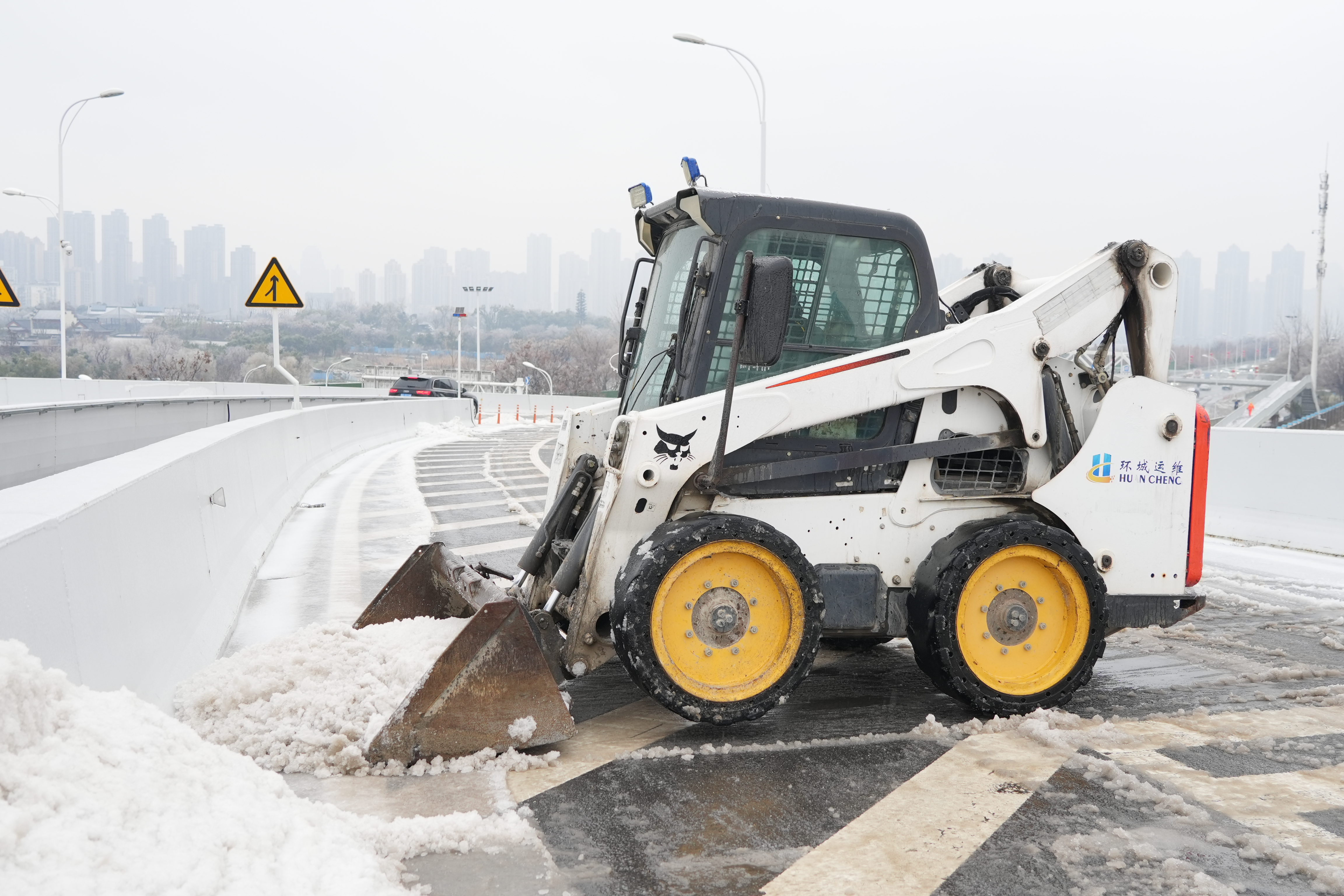 2月2日01时49分武汉市气象台发布道路结冰黄色预警信号,汉阳市政启动应急预案,志愿者服务队、铲雪除冰突击队连夜组织力量、紧急出动,对快速通道、高架桥梁以及汉阳区墨水湖北路、汉阳大道、鹦鹉大道等主干道开展扫雪除冰作业,抗风雪、护安宁、保出行。