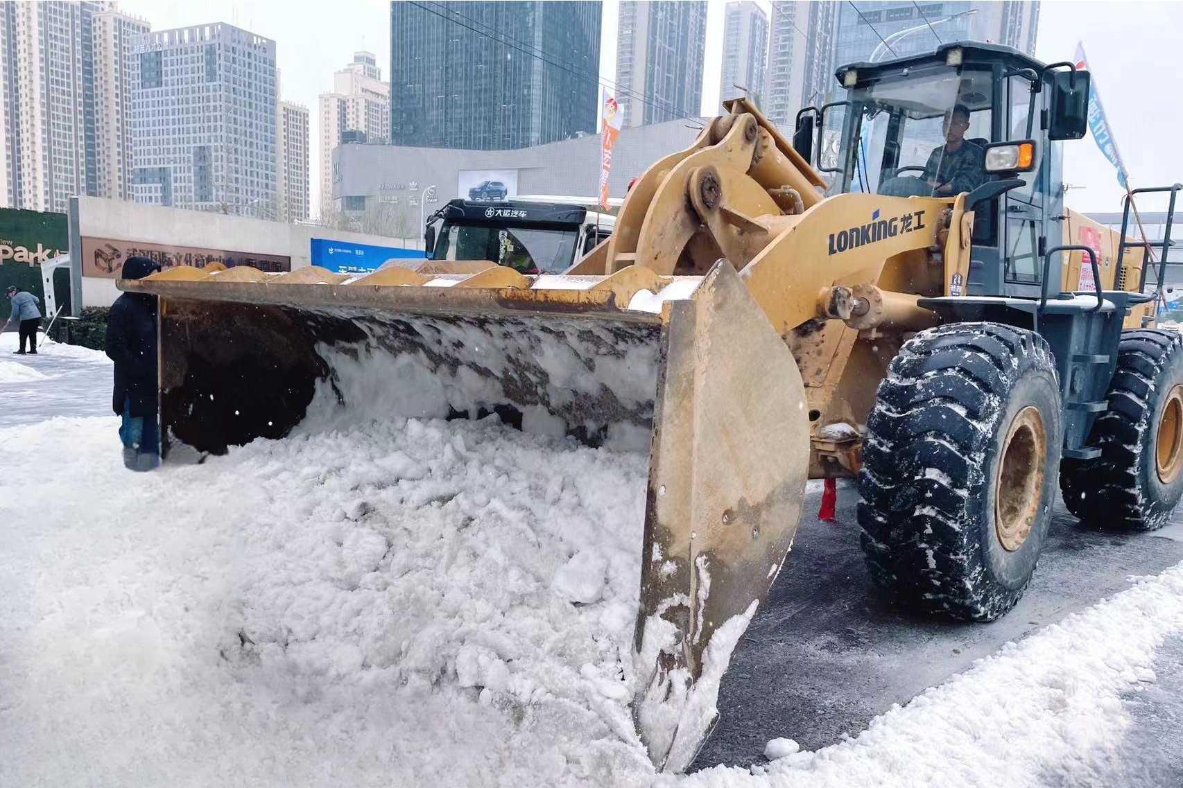 24小时不间断,汉阳市政融雪除冰应急抢险突击队通宵奋战,积极投身到保畅保通工作当中,驾驶融雪剂撒布车、铲车在路面循环作业,在汉阳大道、江城大道、晴川大道、鹦鹉大道、国博大道、墨水湖北路、琴台大道、杨泗港、龙阳大道、仙女山高架、二环线高架等重点区域,通过“人机联合作战”的作业模式,顶风铲雪,保障城市交通畅通;雪中送炭,帮助受困车辆脱险。同时,应急人员积极帮助小区铲雪,全力保障市民出行安全。