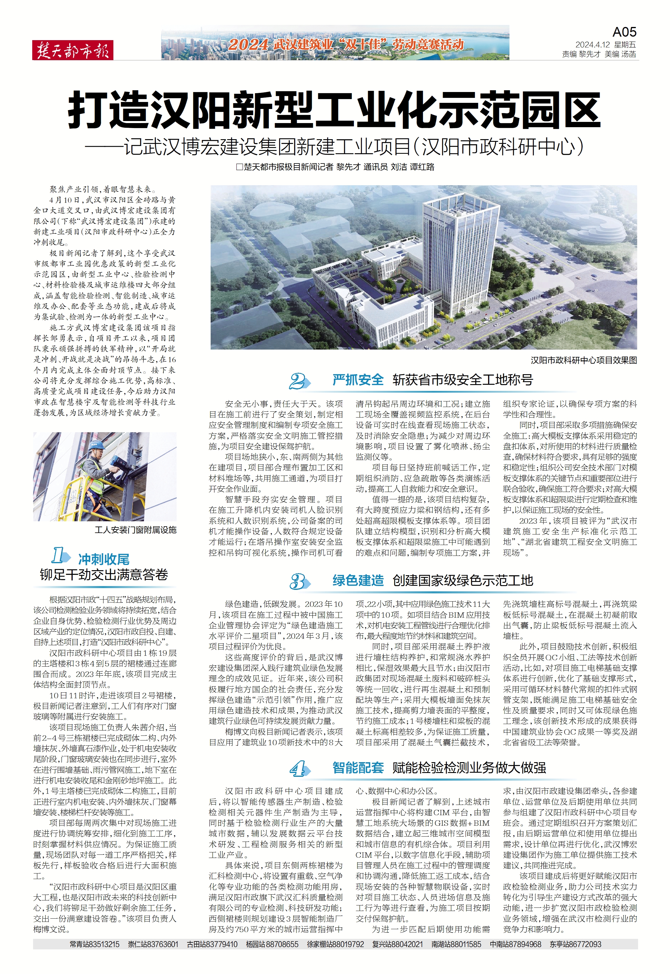 楚天都市报:打造汉阳新型工业化示范园区——记武汉博宏建设集团新建工业项目(汉阳市政科研中心)
